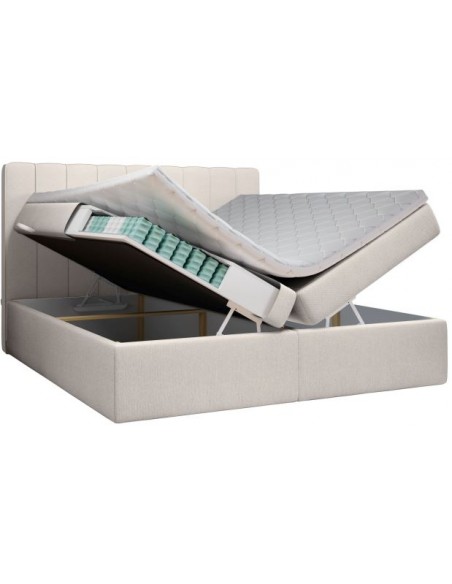 Skyfall kontinentalseng med opbevaring og sengegavl 180 x 200 cm med 7 komfortzoner - Beige