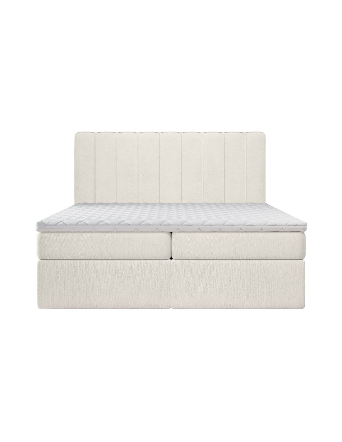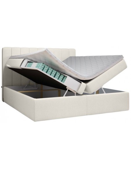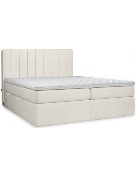 Kontinentalseng med opbevaring og sengegavl, fremstillet i ecru polyester. Sengen måler 180 x 200 / 211 cm i bredde og dybde og 64 / 118 cm i højden. Madrasserne er med 7 komfortzoner for optimal komfort.
