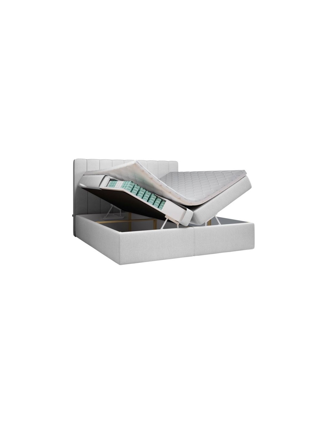 Skyfall kontinentalseng med opbevaring og sengegavl 180 x 200 cm med 7 komfortzoner - Lysegrå