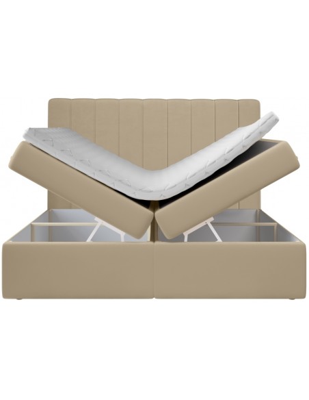 Skyfall kontinentalseng med opbevaring og sengegavl 180 x 200 cm med 7 komfortzoner - Guldbeige