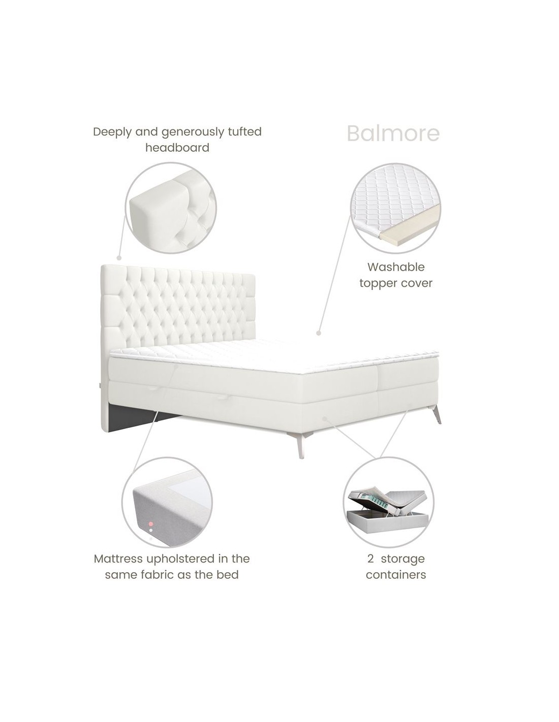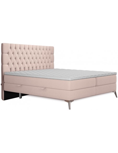 Balmore kontinentalseng med opbevaring og sengegavl 180 x 200 cm med 7 komfortzoner - Krom/Pastelpink