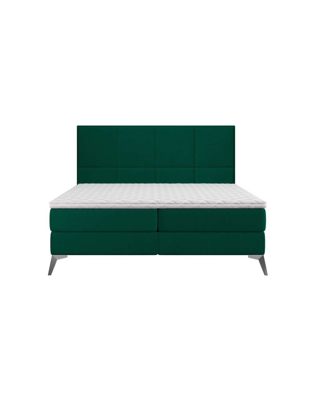 Cube kontinentalseng med opbevaring og sengegavl 180 x 200 cm med 7 komfortzoner - Krom/Flaskegrøn