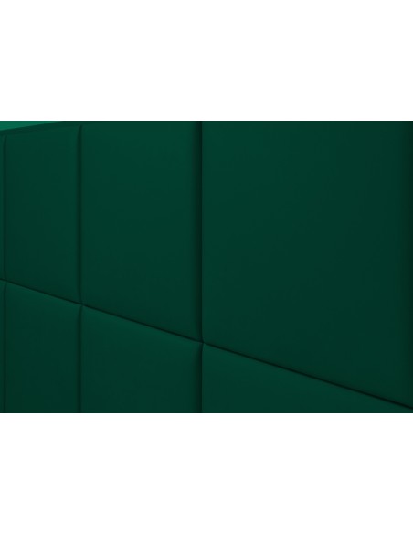 Kontinentalseng med opbevaring og sengegavl, fremstillet i flaskegrøn velour. Sengen måler 180 x 200 / 211 cm i bredde og dybde og 55 / 123 cm i højden. Madrasserne er med 7 komfortzoner for optimal komfort.