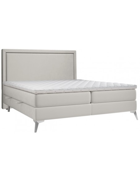 Kontinentalseng med opbevaring og sengegavl, fremstillet i lys beige velour. Sengen måler 180 x 200 / 211 cm i bredde og dybde og 55 / 118 cm i højden. Madrasserne er med 7 komfortzoner for optimal komfort.