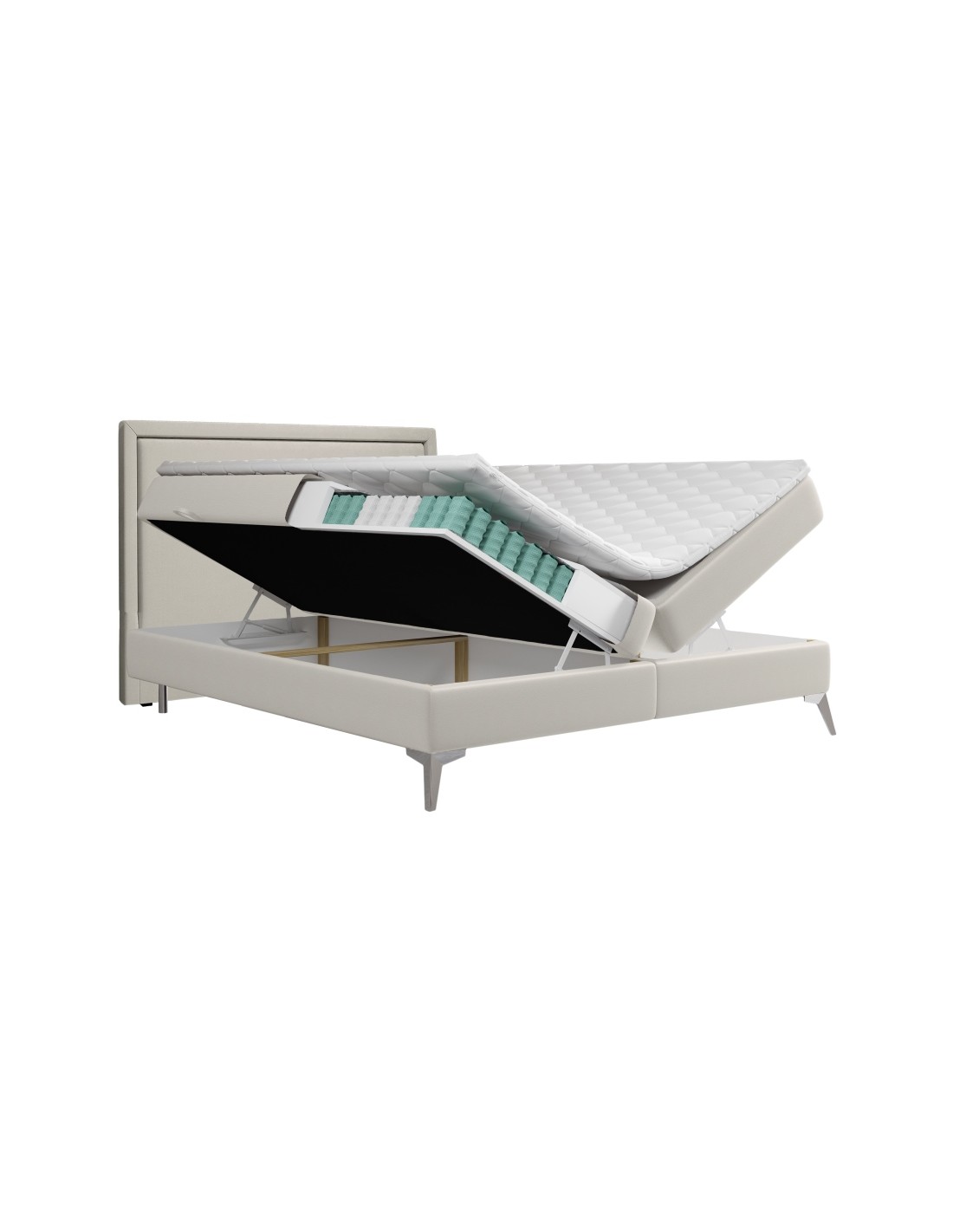Joy kontinentalseng med opbevaring og sengegavl 180 x 200 cm med 7 komfortzoner - Krom/Lys beige