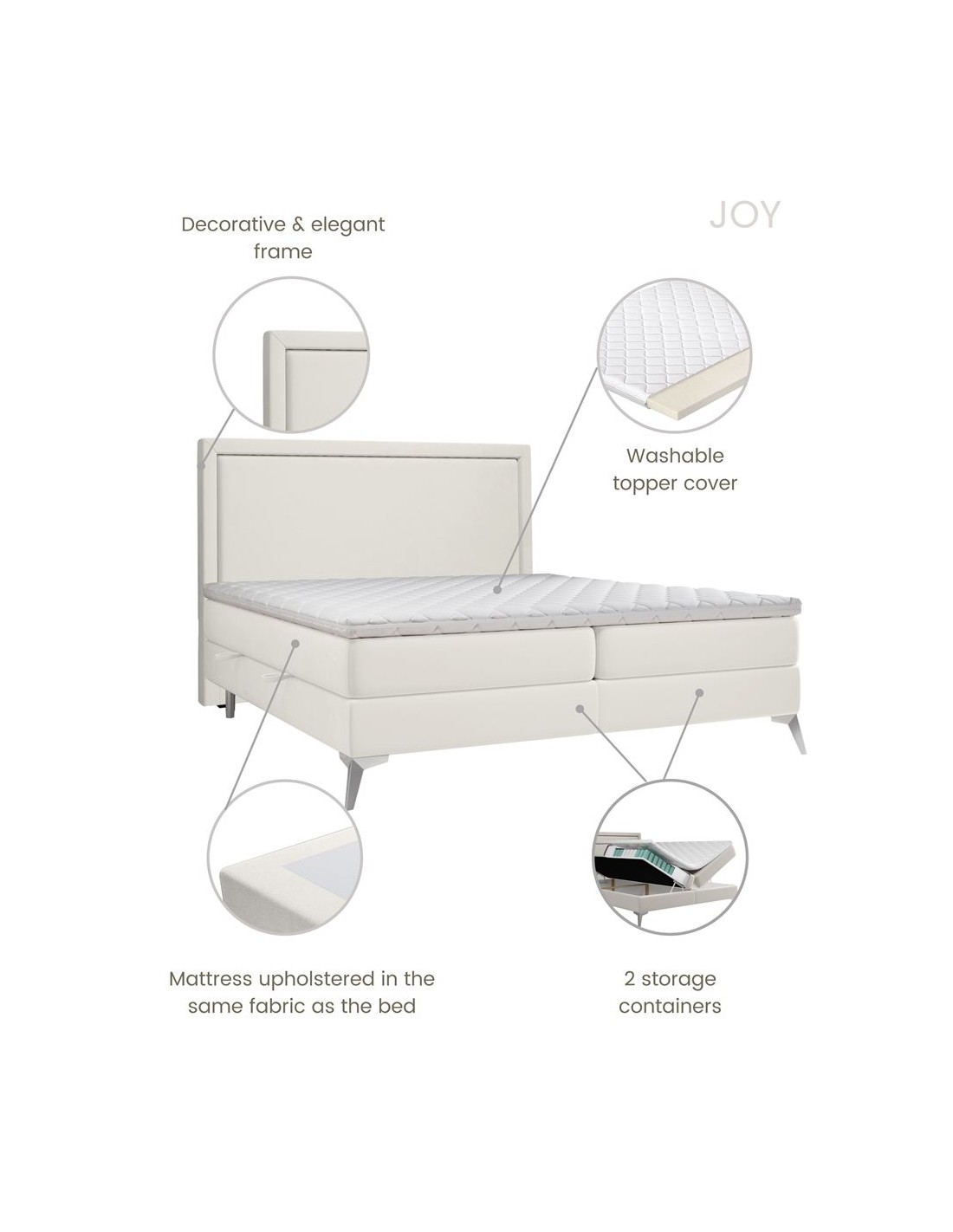 • Opbevaringsbokse under madras måler 17 cm i højden