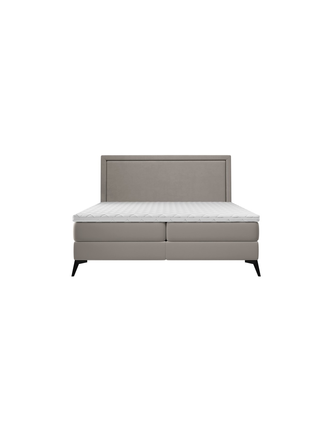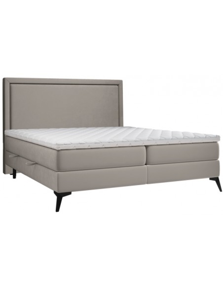 Kontinentalseng med opbevaring og sengegavl, fremstillet i mørk beige velour. Sengen måler 180 x 200 / 211 cm i bredde og dybde og 55 / 118 cm i højden. Madrasserne er med 7 komfortzoner for optimal komfort.