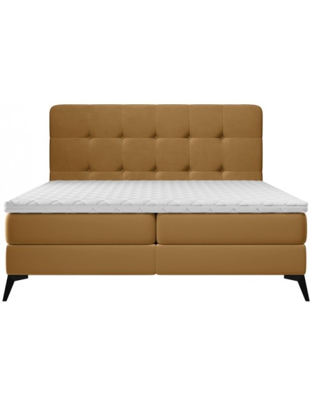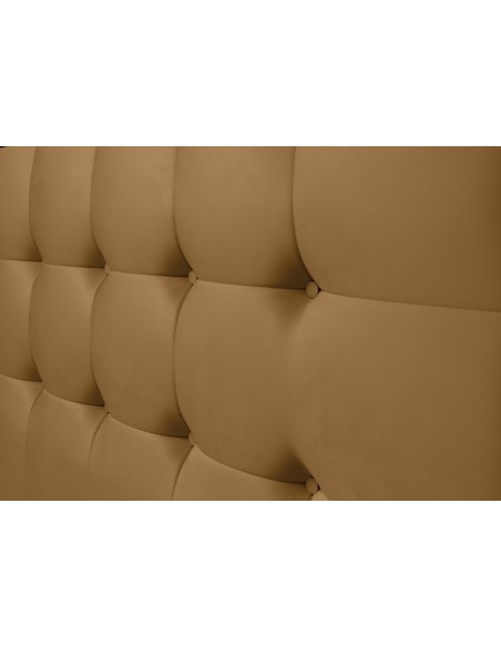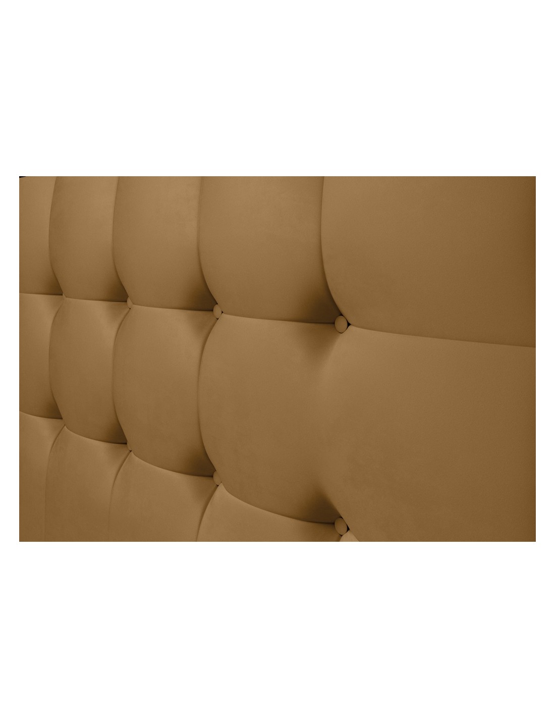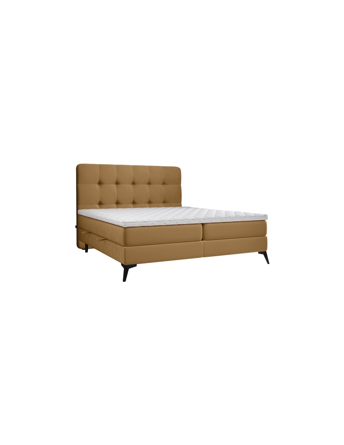 Kontinentalseng med opbevaring og sengegavl, fremstillet i brunguld velour. Sengen måler 180 x 200 / 211 cm i bredde og dybde og 55 / 118 cm i højden. Madrasserne er med 7 komfortzoner for optimal komfort.