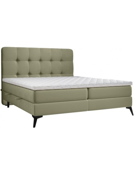 Kontinentalseng med opbevaring og sengegavl, fremstillet i skovgrøn velour. Sengen måler 180 x 200 / 211 cm i bredde og dybde og 55 / 118 cm i højden. Madrasserne er med 7 komfortzoner for optimal komfort.