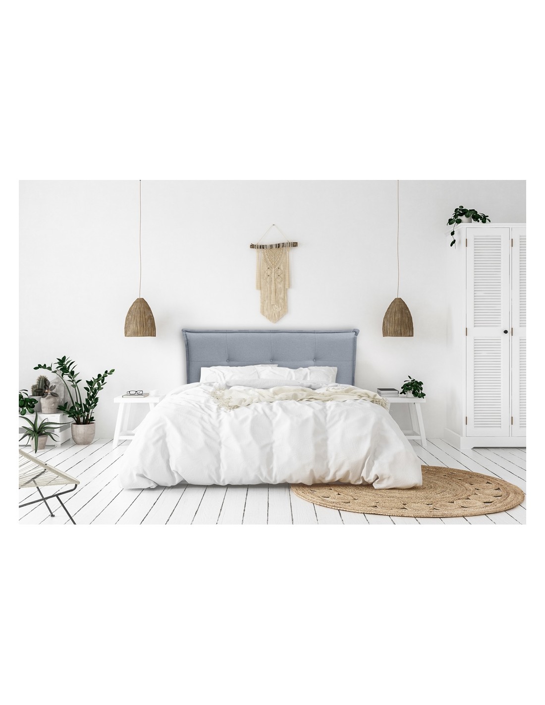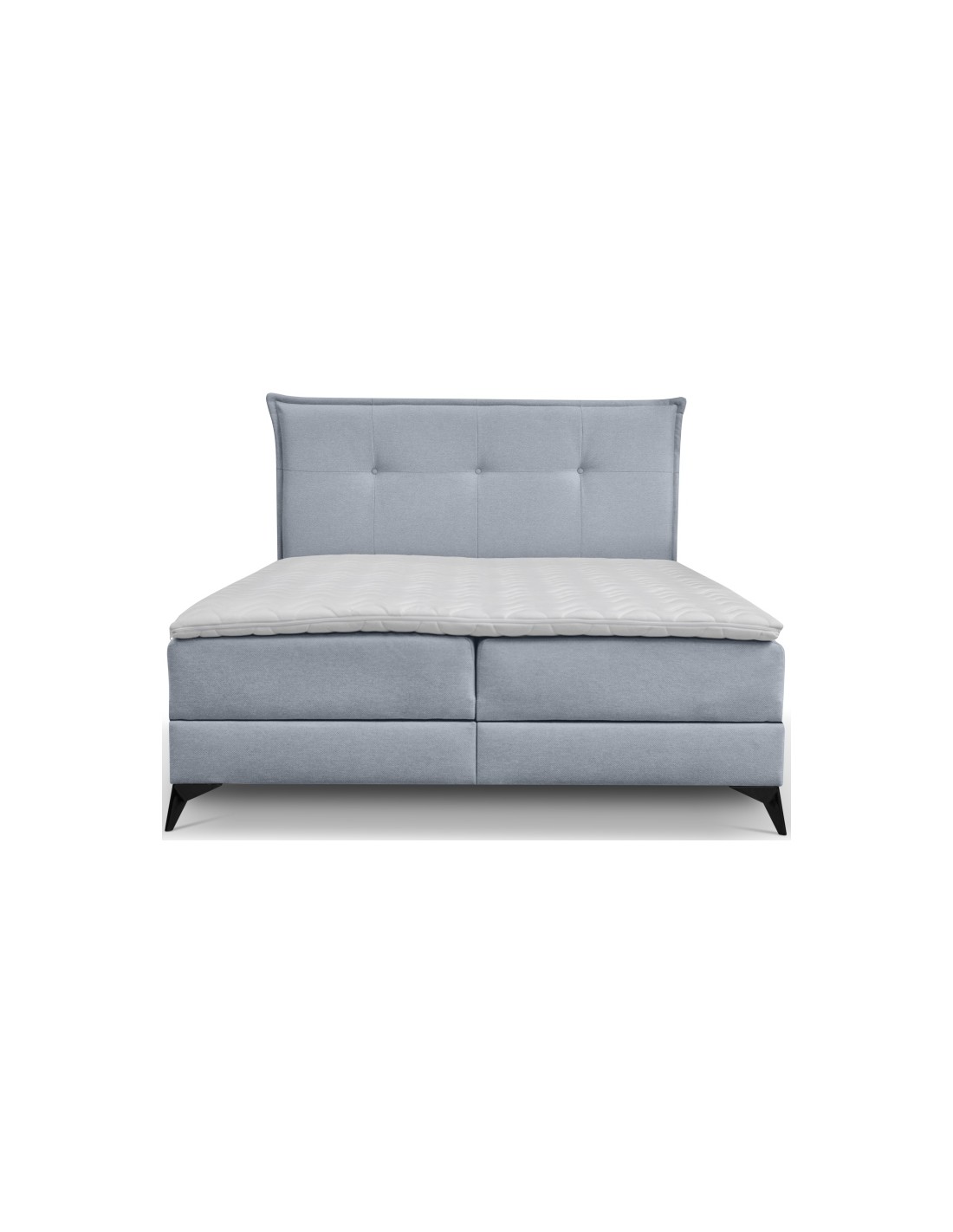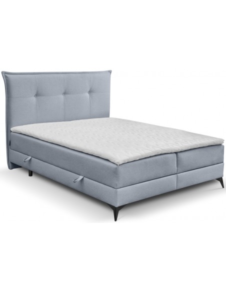 Kontinentalseng med opbevaring og sengegavl, fremstillet i blågrå polyester. Sengen måler 180 x 200 / 211 cm i bredde og dybde og 55 / 118 cm i højden. Madrasserne er med 7 komfortzoner for optimal komfort.
