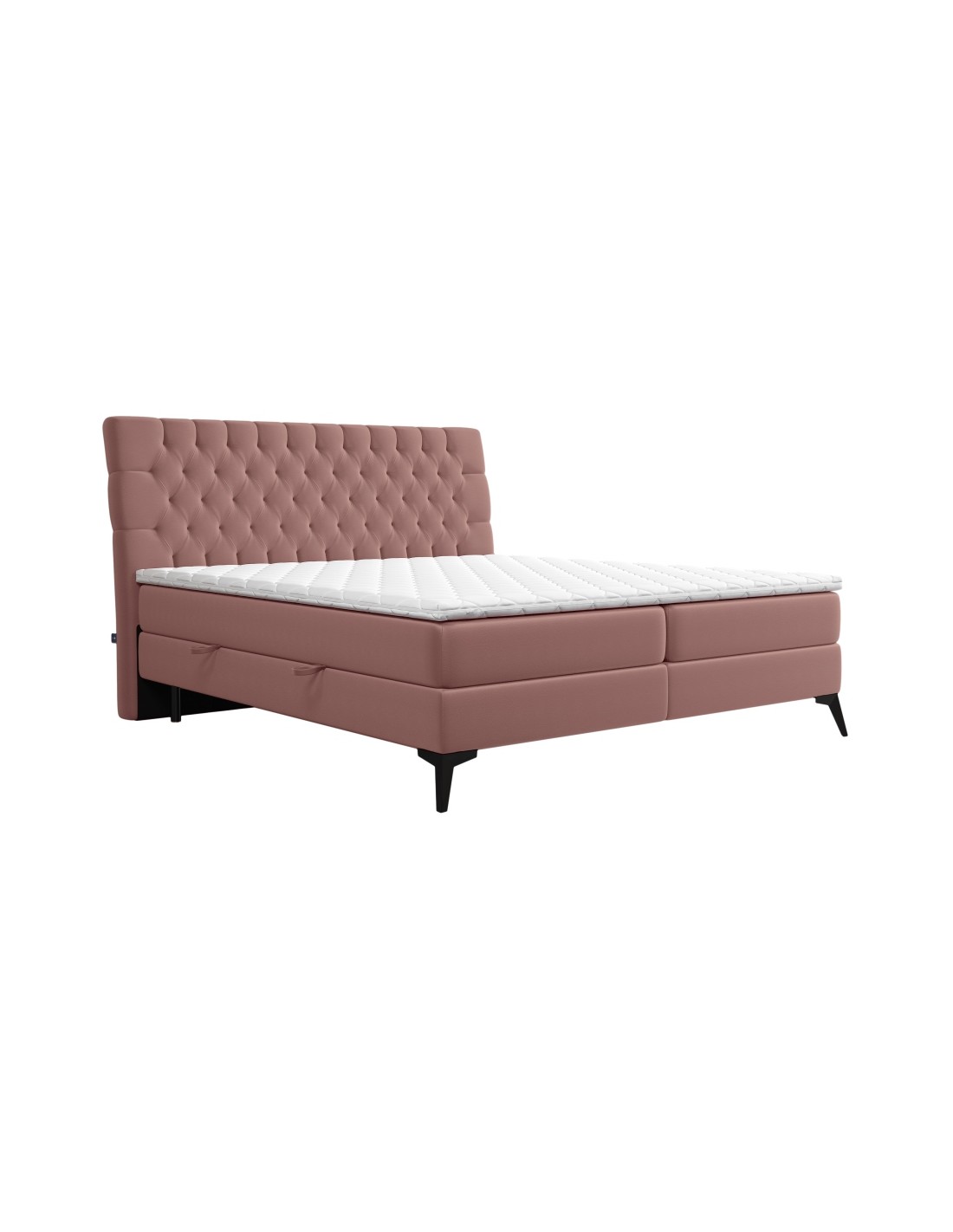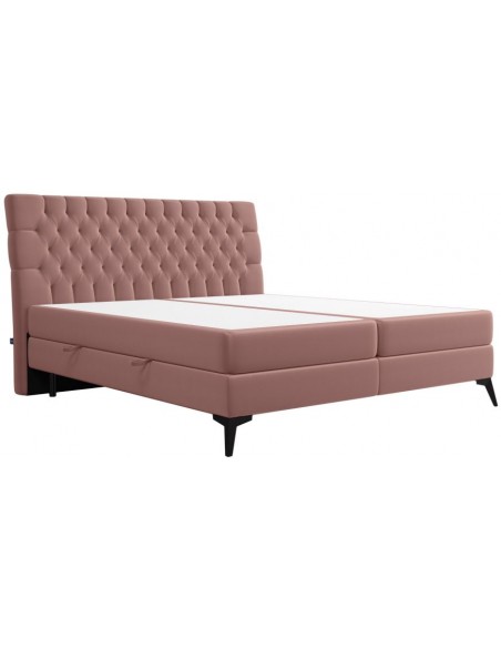 Kontinentalseng med opbevaring og sengegavl, fremstillet i pink velour. Sengen måler 180 x 200 / 211 cm i bredde og dybde og 55 / 118 cm i højden. Madrasserne er med 7 komfortzoner for optimal komfort.
