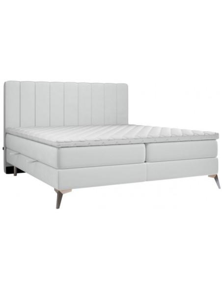 Aggaz kontinentalseng med opbevaring og sengegavl 180 x 200 cm med 7 komfortzoner - Krom/Lysegrå