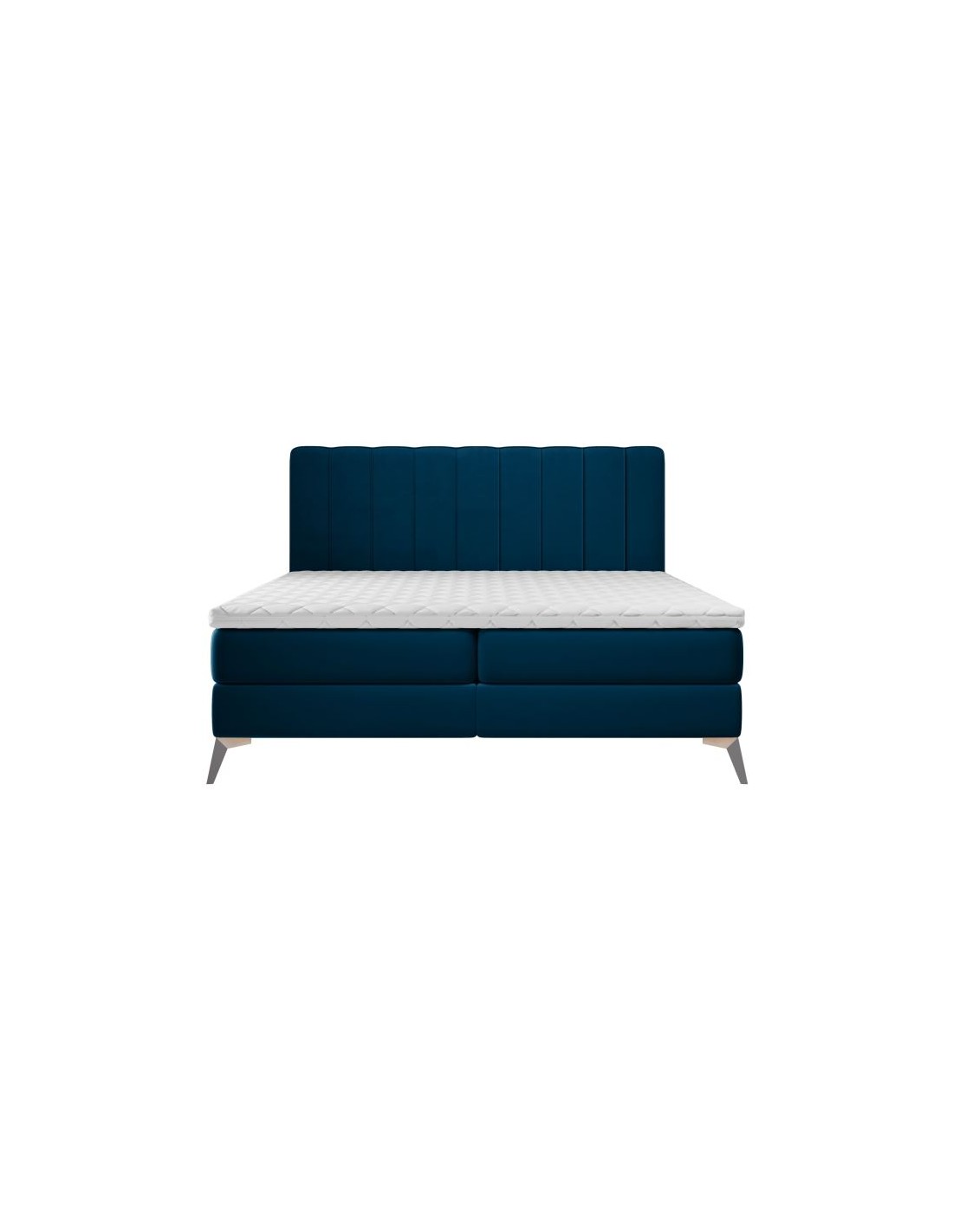 Kontinentalseng med opbevaring og sengegavl, fremstillet i dyb blå velour. Sengen måler 180 x 200 / 211 cm i bredde og dybde og 55 / 120 cm i højden. Madrasserne er med 7 komfortzoner for optimal komfort.