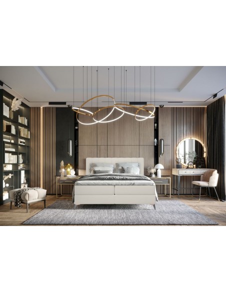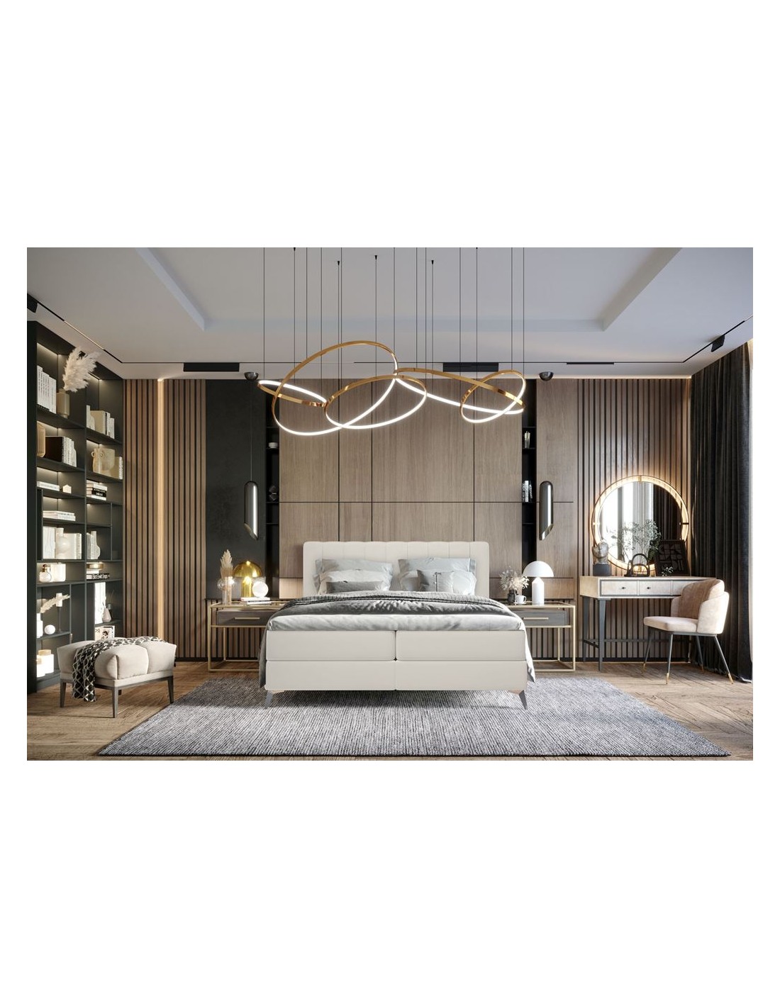 Aggaz kontinentalseng med opbevaring og sengegavl 180 x 200 cm med 7 komfortzoner - Krom/Cremehvid