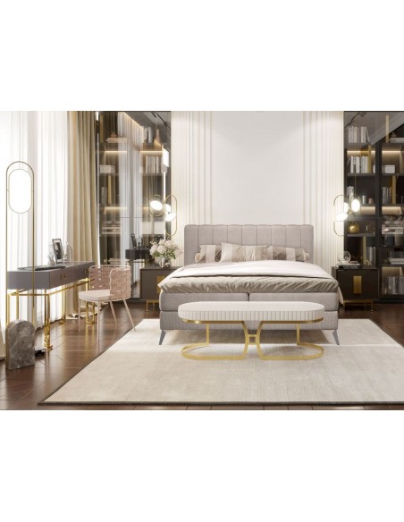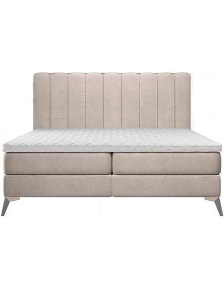 Aggaz kontinentalseng med opbevaring og sengegavl 180 x 200 cm med 7 komfortzoner - Krom/Mørk beige