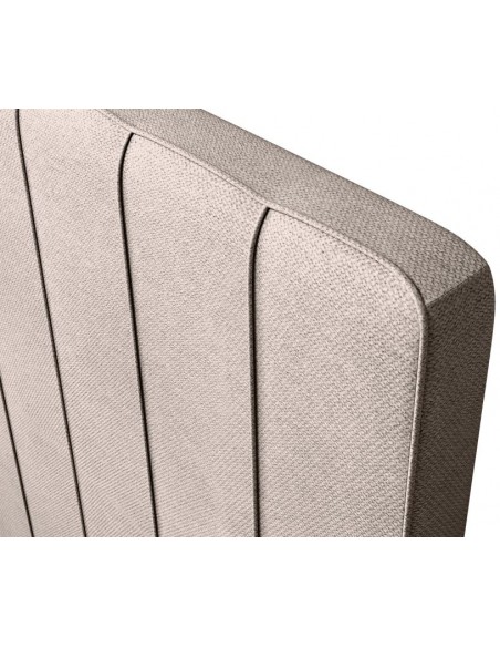 Kontinentalseng med opbevaring og sengegavl, fremstillet i mørk beige polyester. Sengen måler 180 x 200 / 211 cm i bredde og dybde og 55 / 120 cm i højden. Madrasserne er med 7 komfortzoner for optimal komfort.
