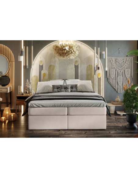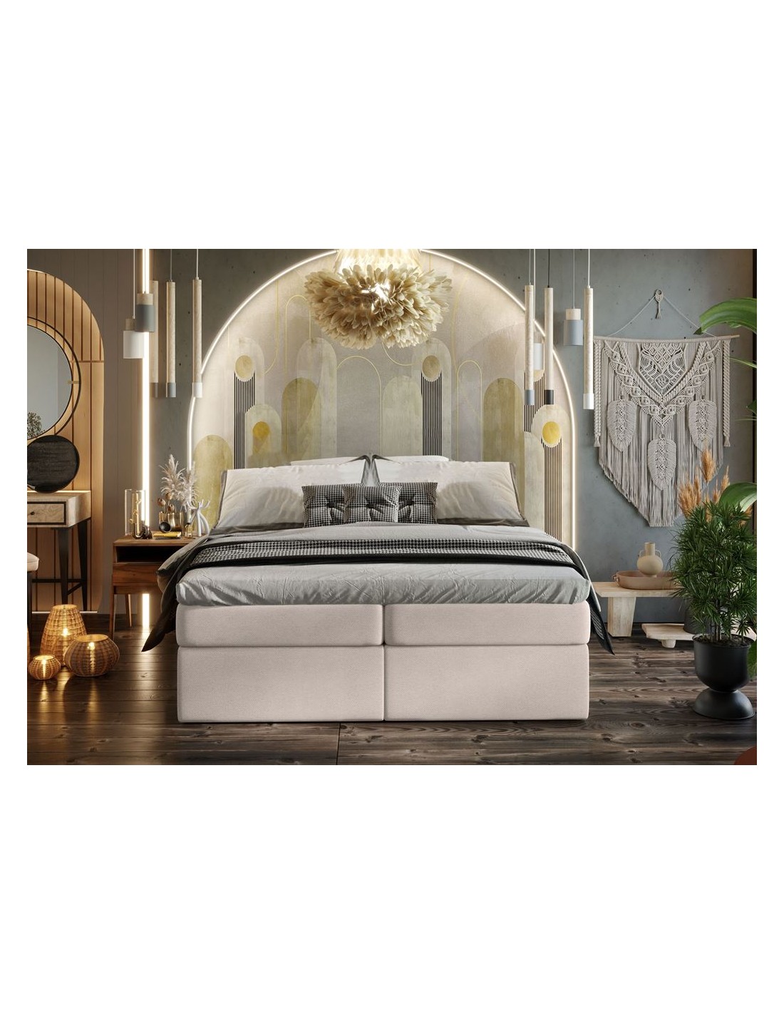 Kontinentalseng med opbevaring, fremstillet i brunbeige polyester. Sengen måler 180 x 200 cm i bredde og dybde og 64 cm i højden. Madrasserne er med 7 komfortzoner for optimal komfort.