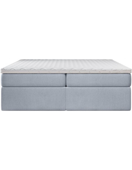 Kontinentalseng med opbevaring, fremstillet i blågrå polyester. Sengen måler 180 x 200 cm i bredde og dybde og 64 cm i højden. Madrasserne er med 7 komfortzoner for optimal komfort.