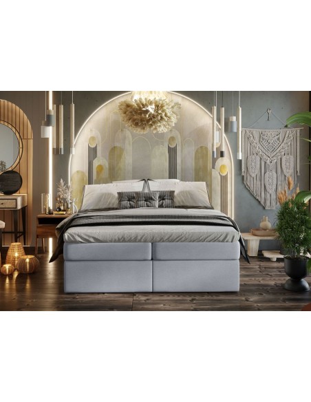 Kontinentalseng med opbevaring, fremstillet i mørkegrå polyester. Sengen måler 180 x 200 cm i bredde og dybde og 64 cm i højden. Madrasserne er med 7 komfortzoner for optimal komfort.