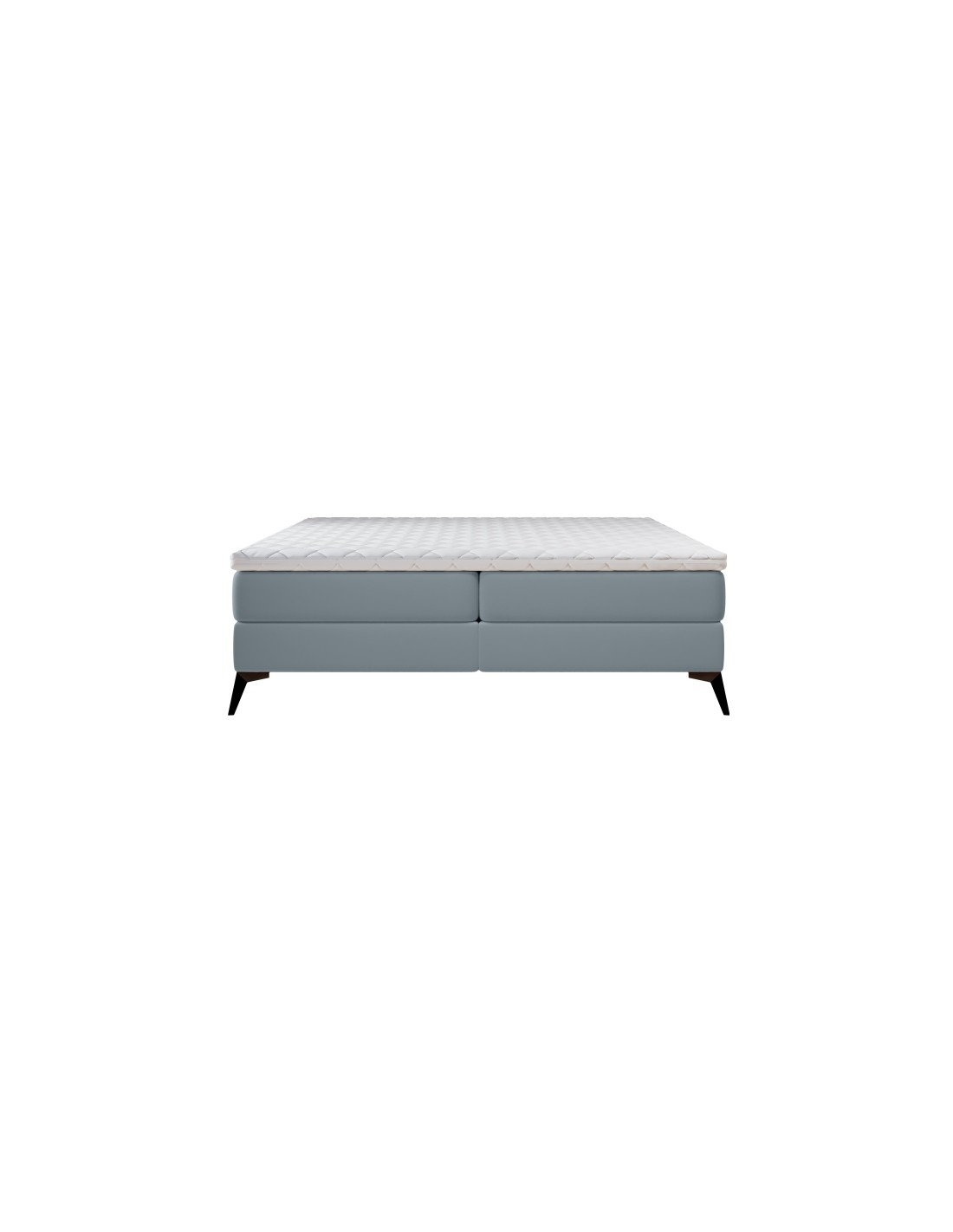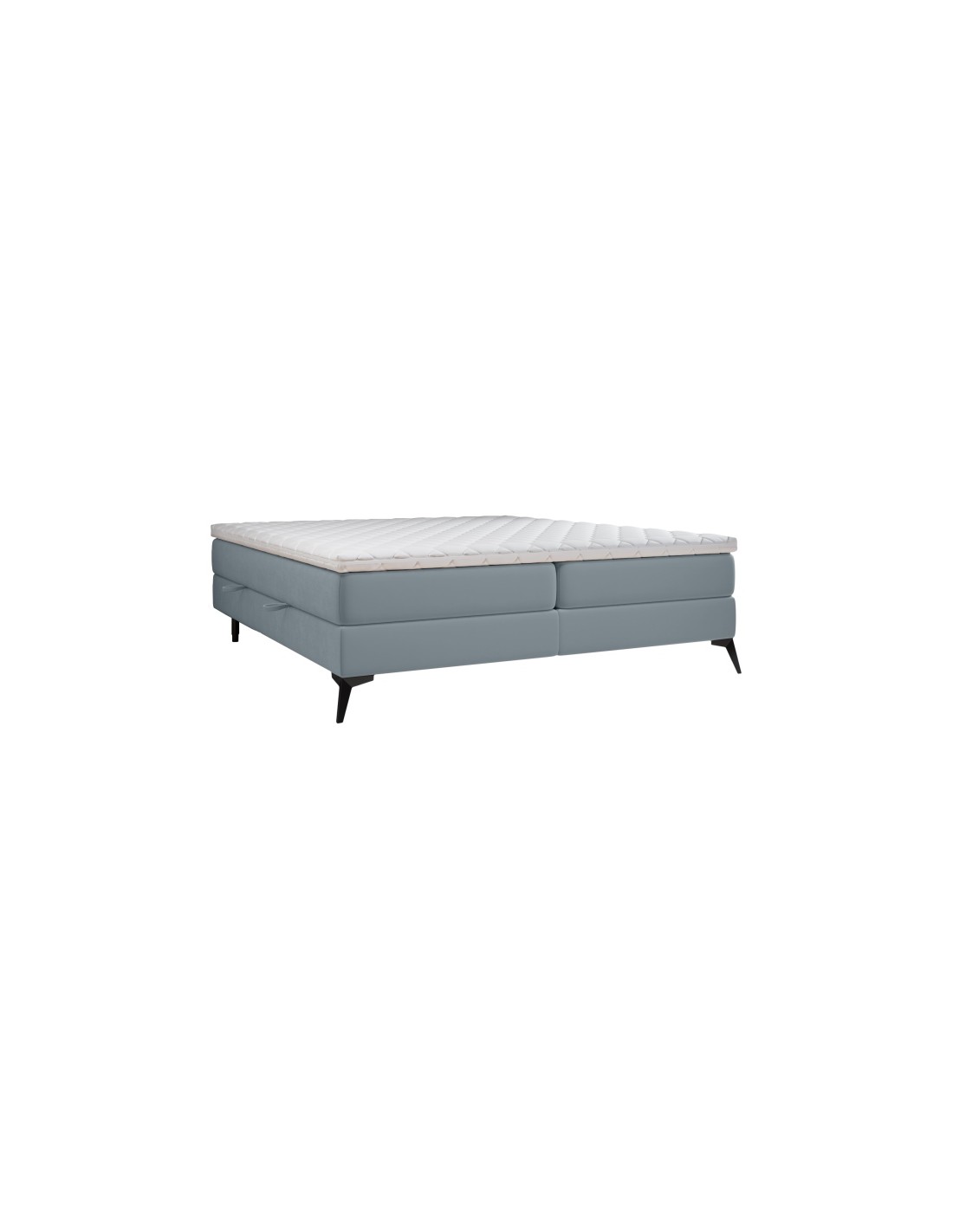 Kontinentalseng med opbevaring, fremstillet i blågrå velour. Sengen måler 180 x 200 cm i bredde og dybde og 55 cm i højden. Madrasserne er med 7 komfortzoner for optimal komfort.