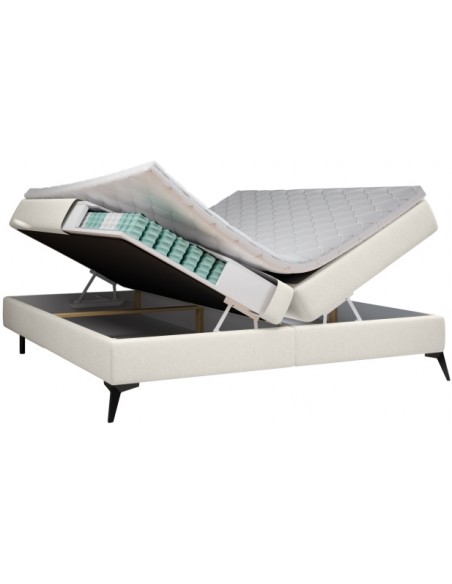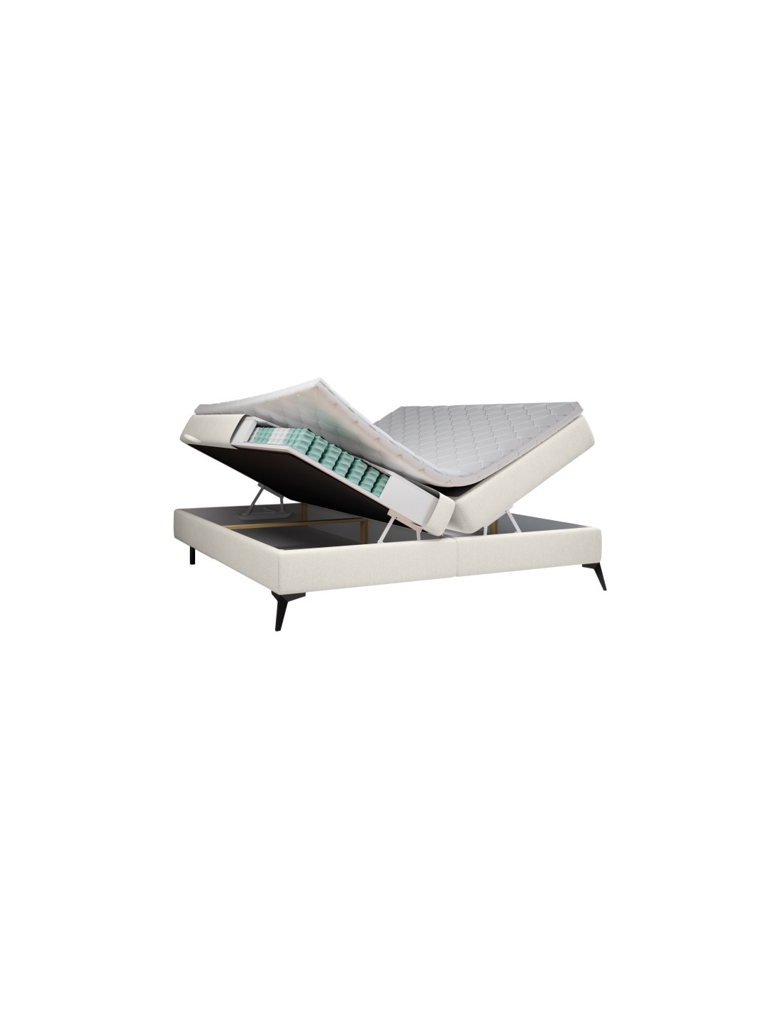 Kontinentalseng med opbevaring, fremstillet i ecru farvet polyester. Sengen måler 180 x 200 cm i bredde og dybde og 55 cm i højden. Madrasserne er med 7 komfortzoner for optimal komfort.