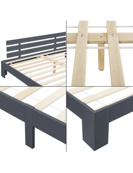 Sengeramme med gavl i fyrretræ 204 x 184 cm - Grå