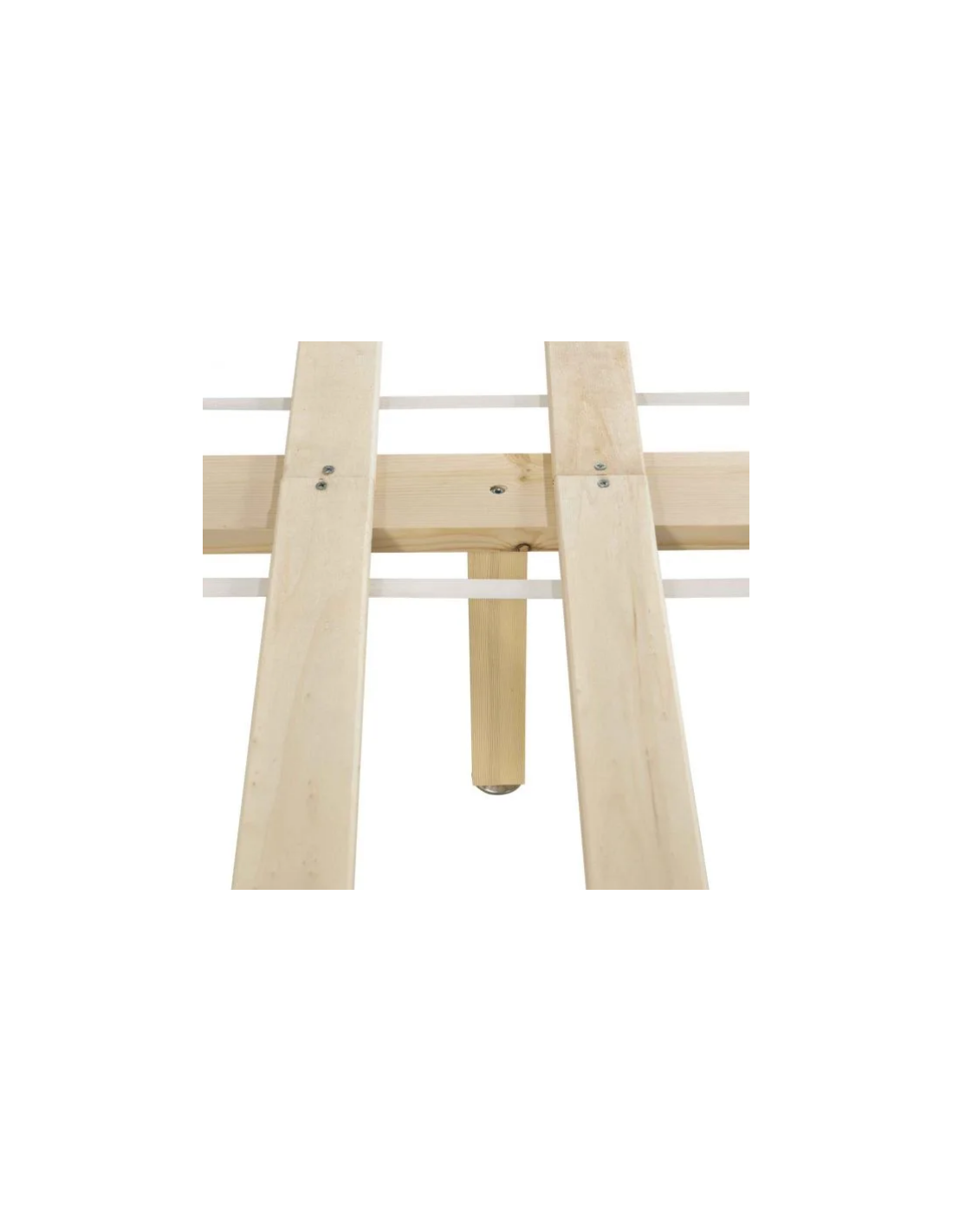 Sengeramme med gavl, udført i et design af fyrretræ. Sengen måler 30 - 82 cm i højden og 208 x 188 cm i bredde og dybde og passer til madrasser med målene 200 x 180 cm. Lamelbund medfølger (max. belastning: 200 kg).