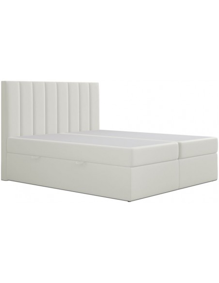Kontinentalseng med opbevaring og sengegavl, fremstillet i cremehvid velour. Sengen måler 200 x 200 / 211 cm i bredde og dybde og 64 / 118 cm i højden. Madrasserne er med 7 komfortzoner for optimal komfort.