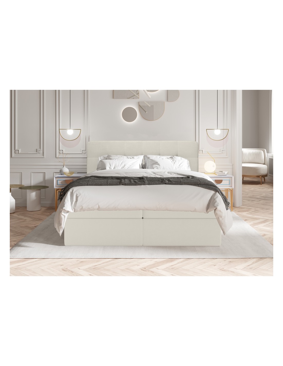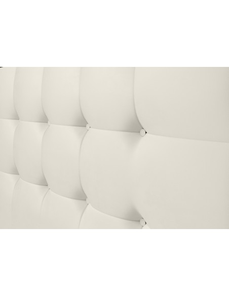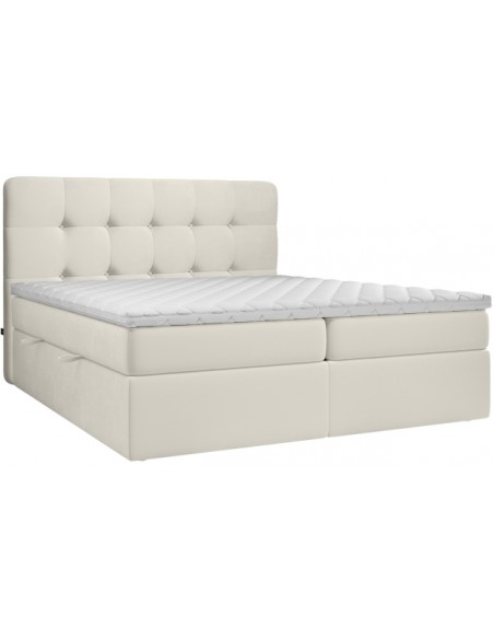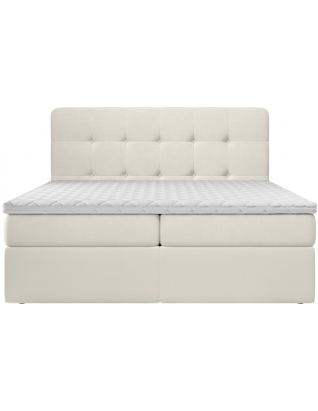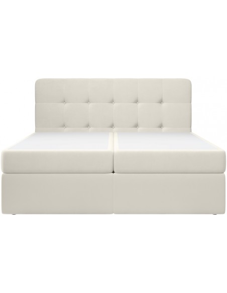 Kontinentalseng med opbevaring og sengegavl, fremstillet i cremehvid velour. Sengen måler 200 x 200 / 211 cm i bredde og dybde og 64 / 118 cm i højden. Madrasserne er med 7 komfortzoner for optimal komfort.