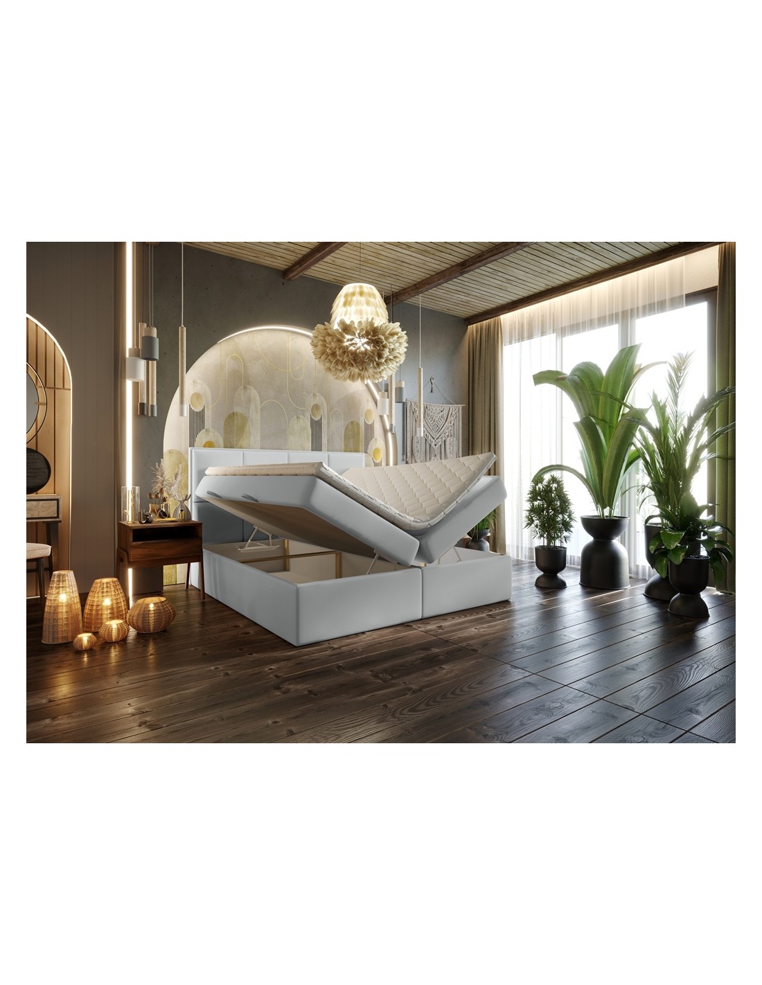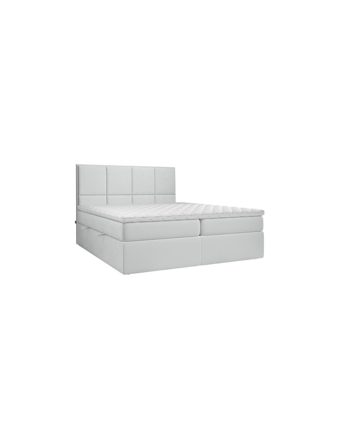 Kontinentalseng med opbevaring og sengegavl, fremstillet i lysegrå velour. Sengen måler 200 x 200 / 211 cm i bredde og dybde og 64 / 118 cm i højden. Madrasserne er med 7 komfortzoner for optimal komfort.