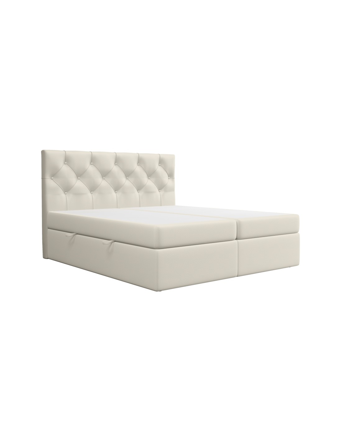 Kontinentalseng med opbevaring og sengegavl, fremstillet i cremehvid velour. Sengen måler 200 x 200 / 211 cm i bredde og dybde og 64 / 118 cm i højden. Madrasserne er med 7 komfortzoner for optimal komfort.