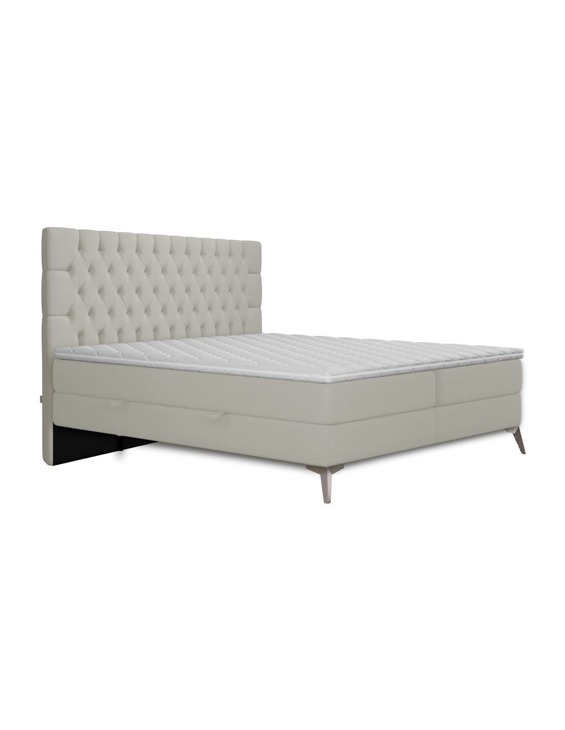 Balmore kontinentalseng med opbevaring og sengegavl 200 x 200 cm med 7 komfortzoner - Krom/Lys beige
