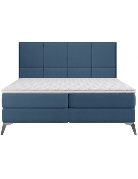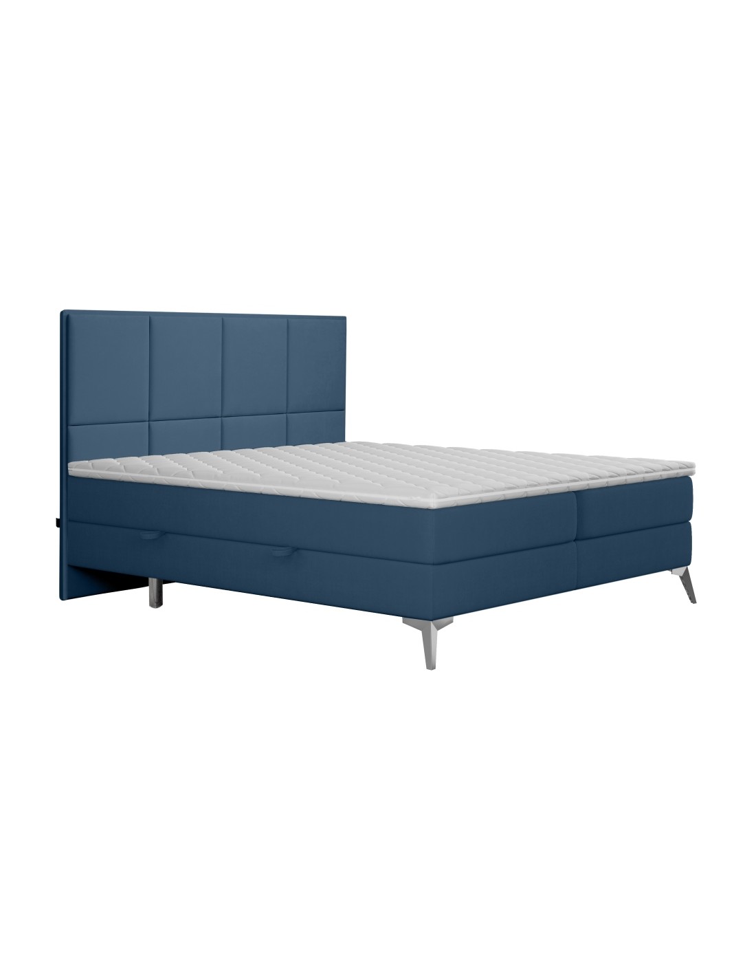 Cube kontinentalseng med opbevaring og sengegavl 200 x 200 cm med 7 komfortzoner - Krom/Blå