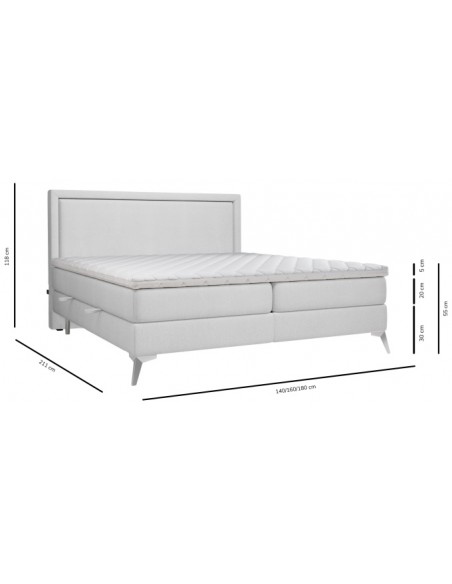 Kontinentalseng med opbevaring og sengegavl, fremstillet i mørk beige velour. Sengen måler 200 x 200 / 211 cm i bredde og dybde og 55 / 118 cm i højden. Madrasserne er med 7 komfortzoner for optimal komfort.