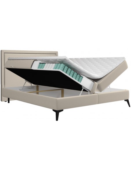 Joy kontinentalseng med opbevaring og sengegavl 200 x 200 cm med 7 komfortzoner - Sort/Guldbeige