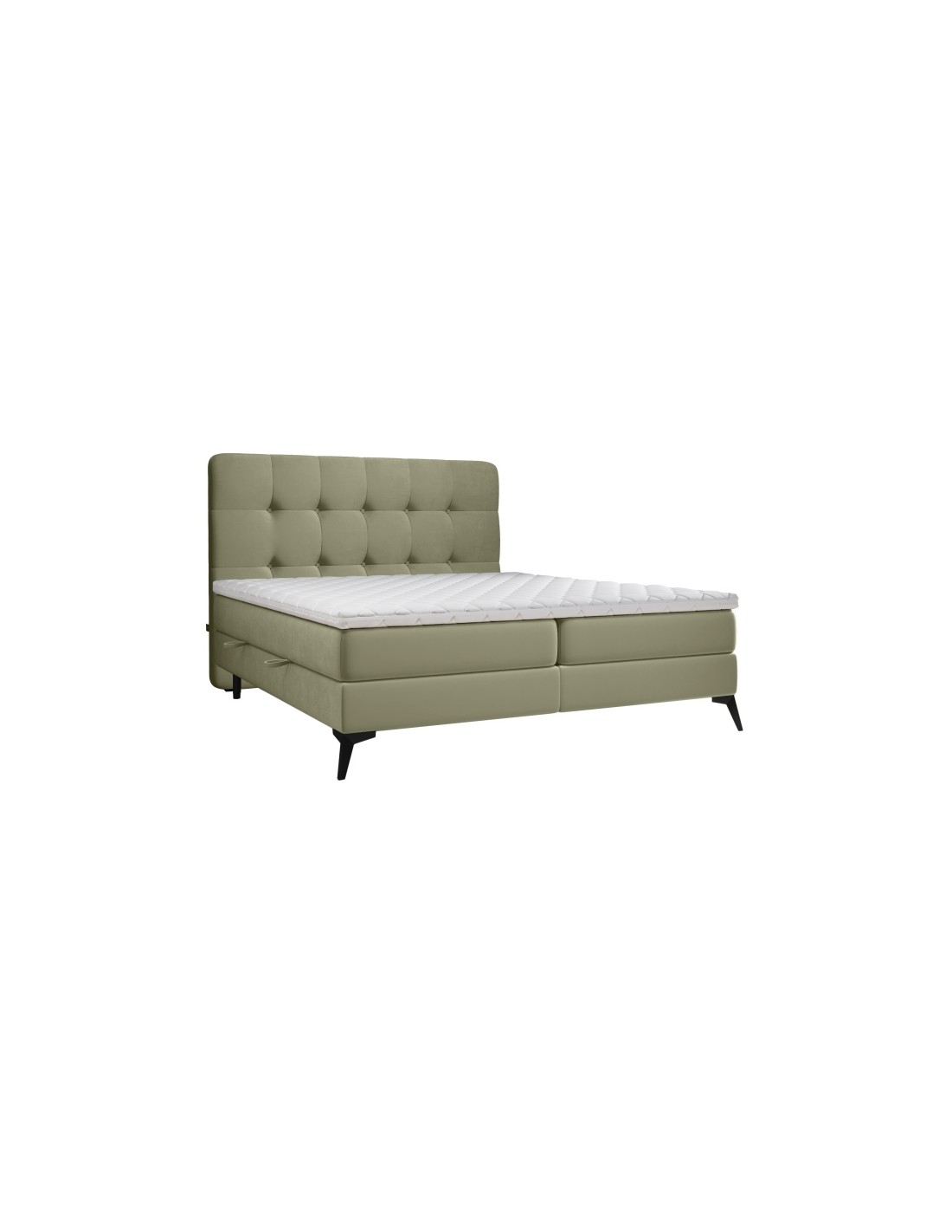 Kontinentalseng med opbevaring og sengegavl, fremstillet i skovgrøn velour. Sengen måler 200 x 200 / 211 cm i bredde og dybde og 55 / 118 cm i højden. Madrasserne er med 7 komfortzoner for optimal komfort.