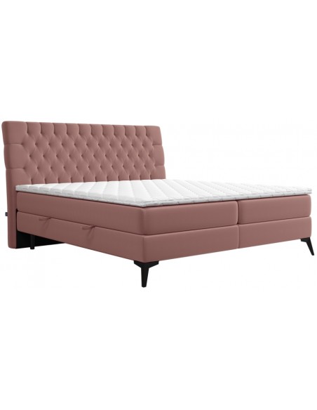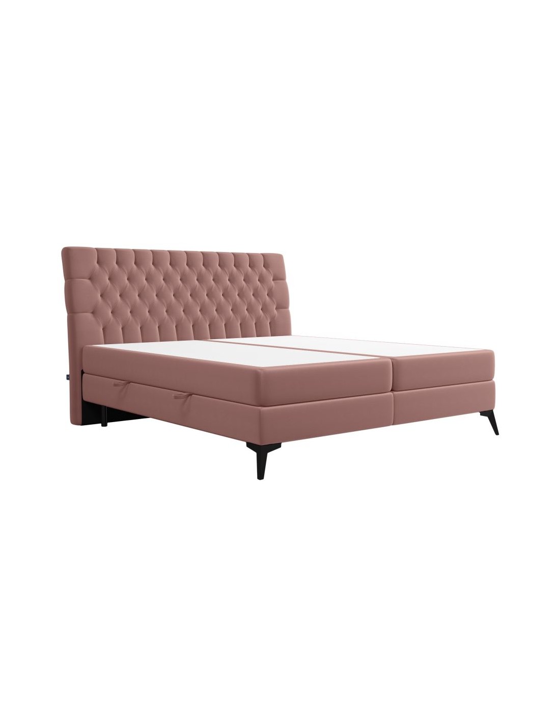Kontinentalseng med opbevaring og sengegavl, fremstillet i pink velour. Sengen måler 200 x 200 / 211 cm i bredde og dybde og 55 / 118 cm i højden. Madrasserne er med 7 komfortzoner for optimal komfort.