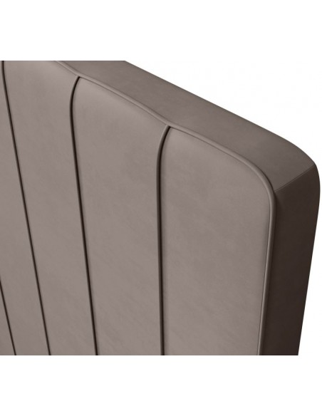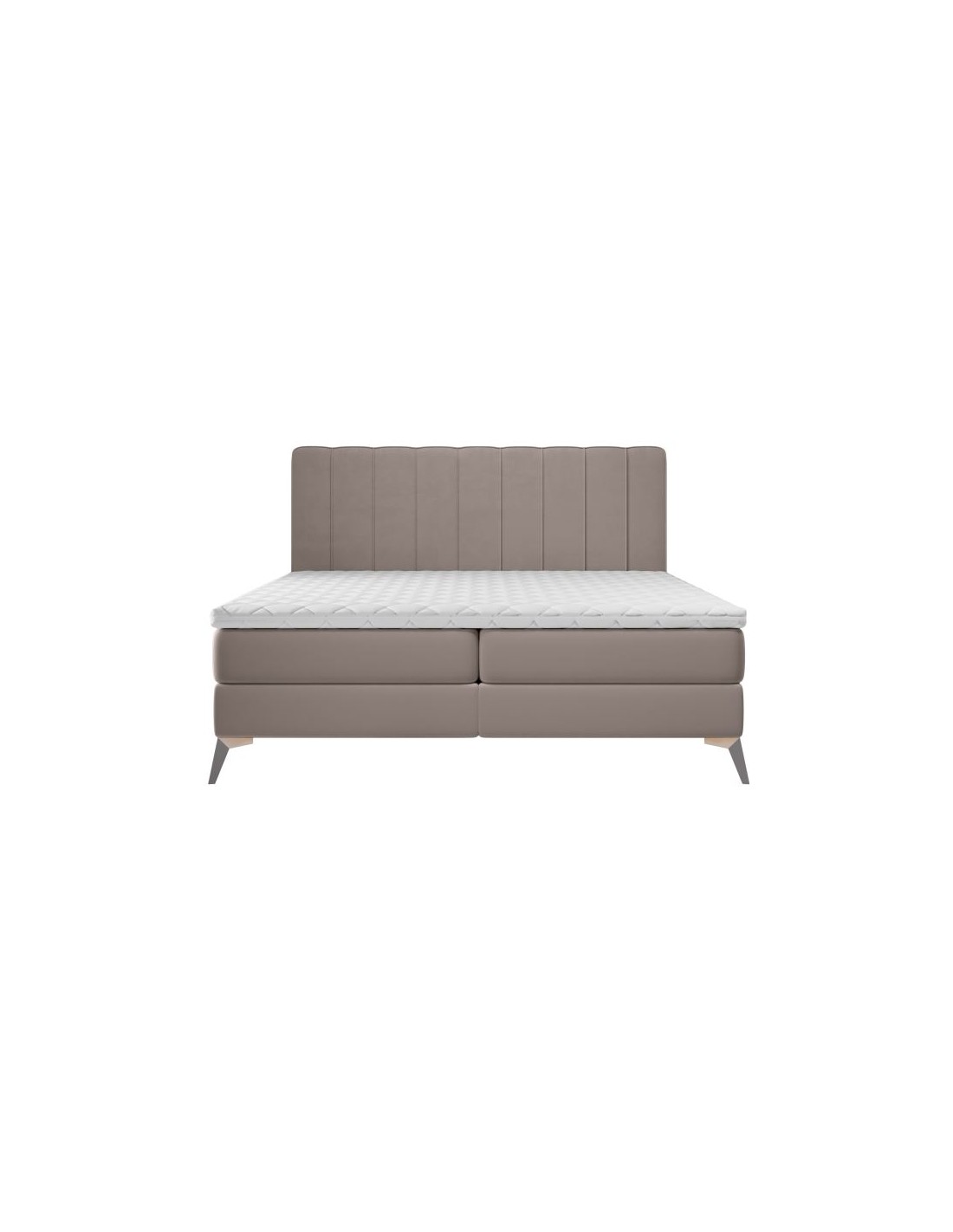 Kontinentalseng med opbevaring og sengegavl, fremstillet i mørk beige velour. Sengen måler 200 x 200 / 211 cm i bredde og dybde og 55 / 120 cm i højden. Madrasserne er med 7 komfortzoner for optimal komfort.
