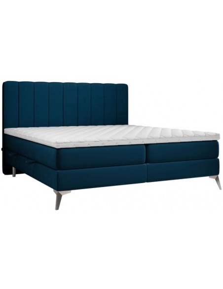 Aggaz kontinentalseng med opbevaring og sengegavl 200 x 200 cm med 7 komfortzoner - Krom/Dyb blå