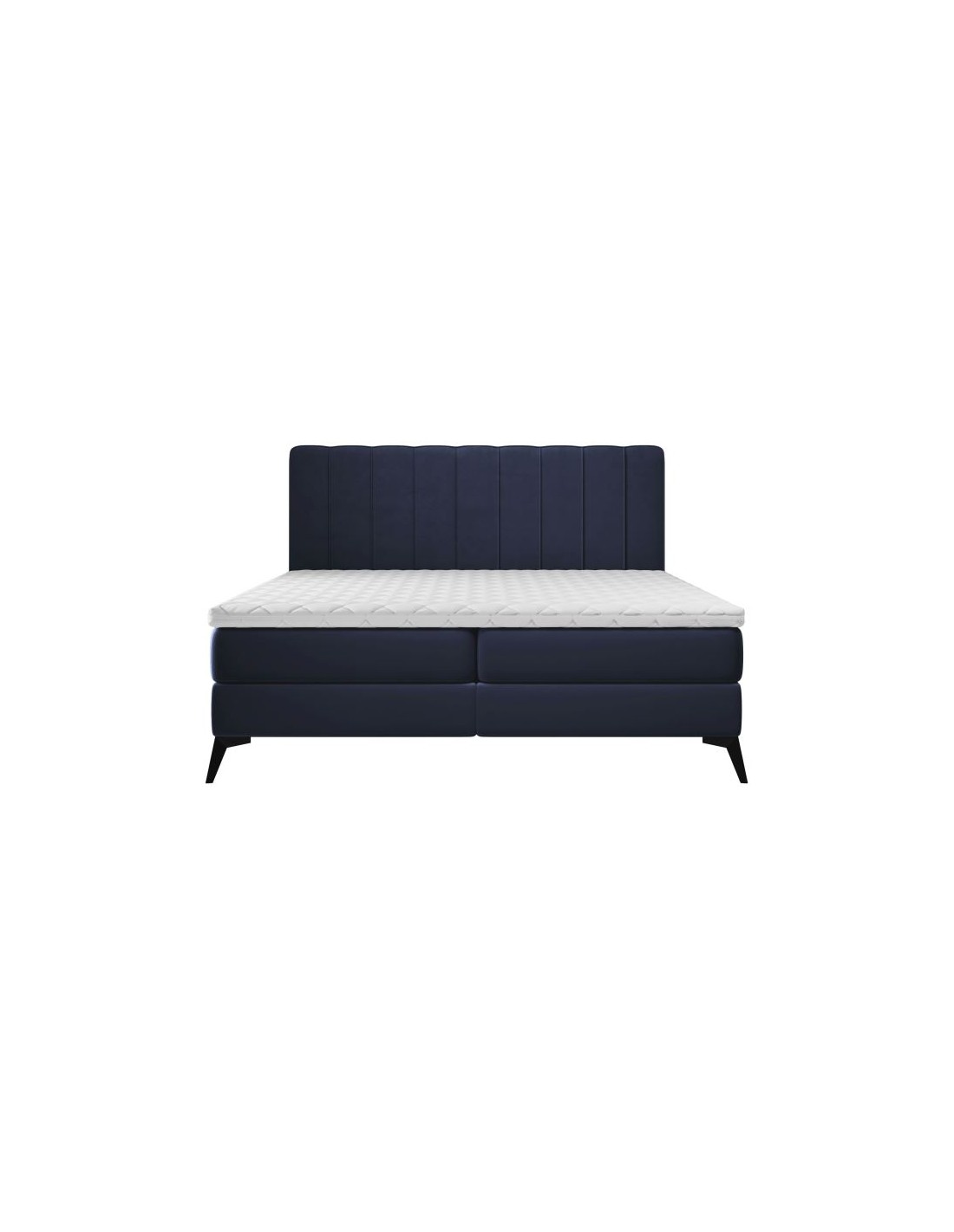 Kontinentalseng med opbevaring og sengegavl, fremstillet i dyb blå velour. Sengen måler 200 x 200 / 211 cm i bredde og dybde og 55 / 120 cm i højden. Madrasserne er med 7 komfortzoner for optimal komfort.