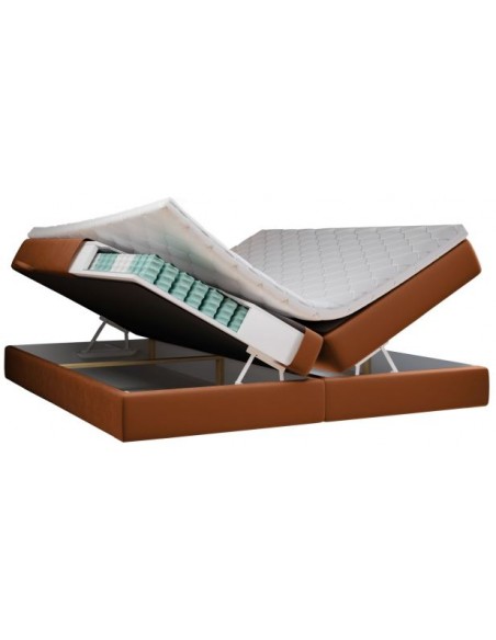 Aggaz kontinentalseng med opbevaring og sengegavl 200 x 200 cm med 7 komfortzoner - Krom/Kobber