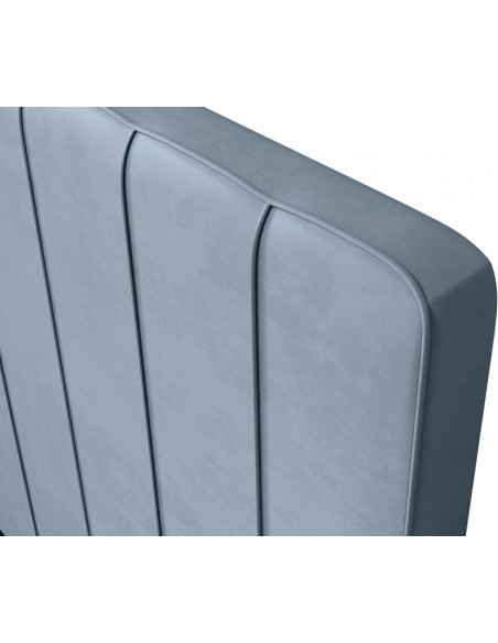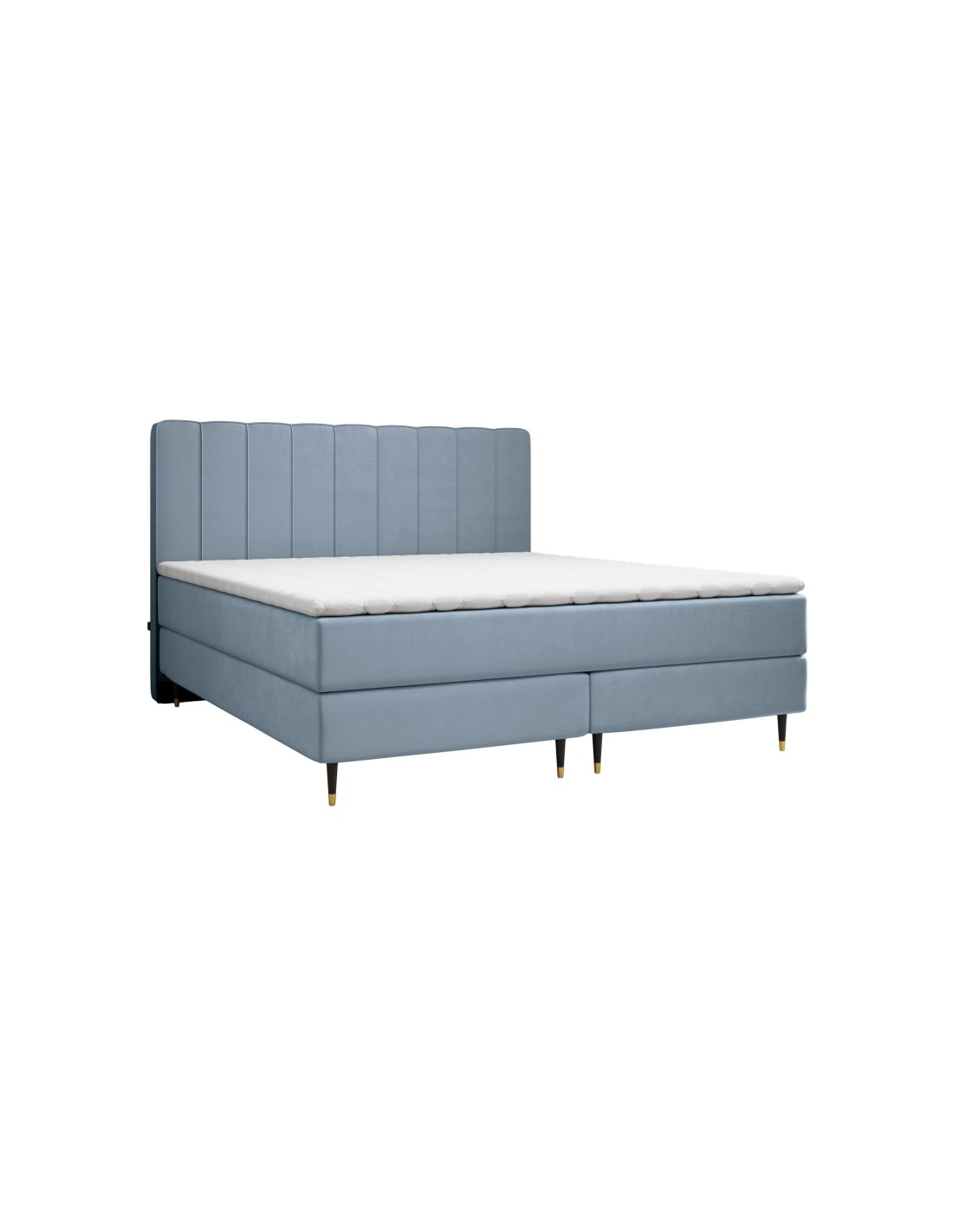 Kontinentalseng med sengegavl, fremstillet i blågrå velour. Sengen måler 200 x 200 / 211 cm i bredde og dybde og 55 / 120 cm i højden. Madrasserne er med 7 komfortzoner for optimal komfort.