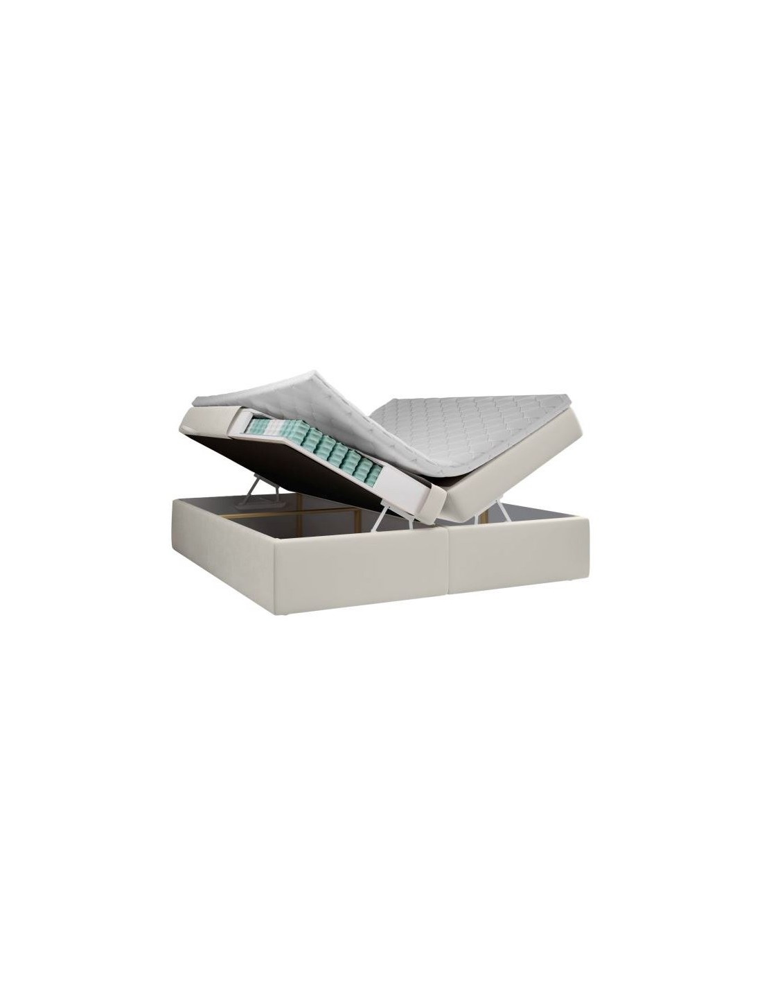 Kontinentalseng med opbevaring, fremstillet i lys beige velour. Sengen måler 200 x 200 cm i bredde og dybde og 64 cm i højden. Madrasserne er med 7 komfortzoner for optimal komfort.