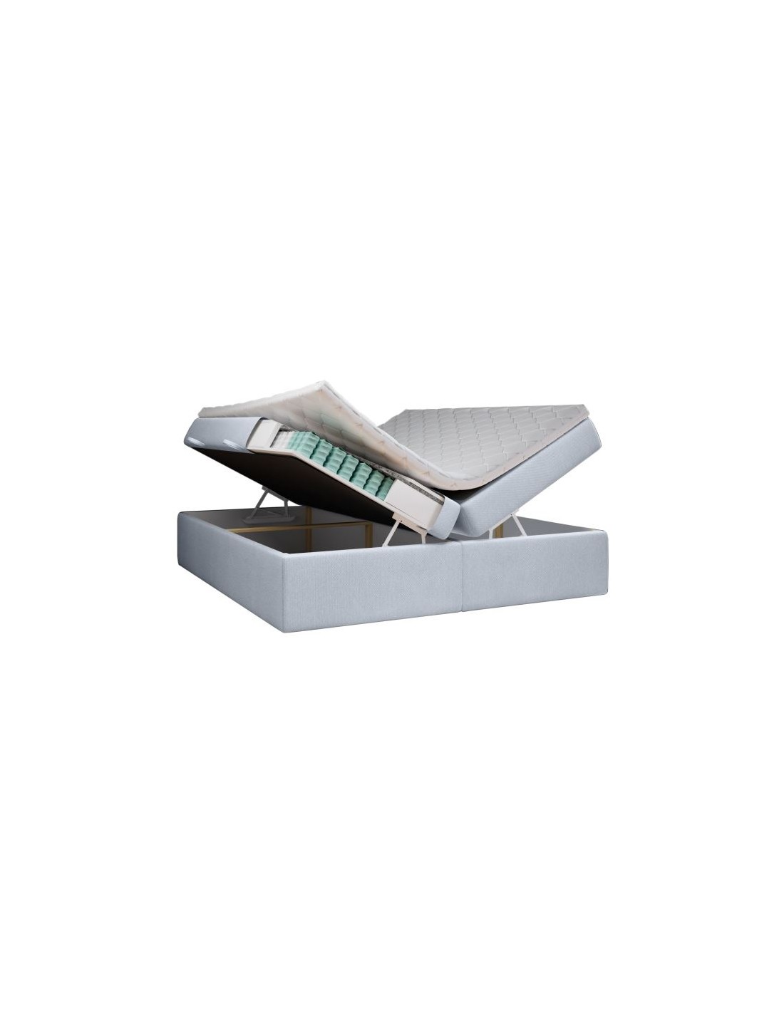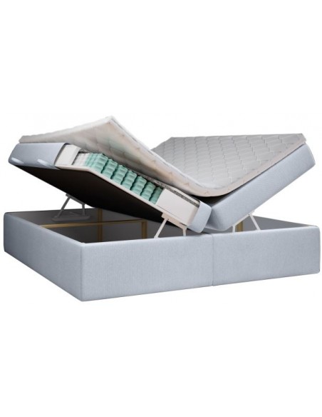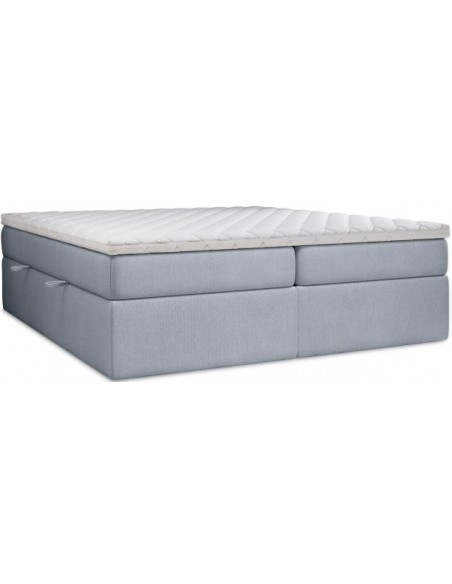 Kontinentalseng med opbevaring, fremstillet i blågrå polyester. Sengen måler 200 x 200 cm i bredde og dybde og 64 cm i højden. Madrasserne er med 7 komfortzoner for optimal komfort.