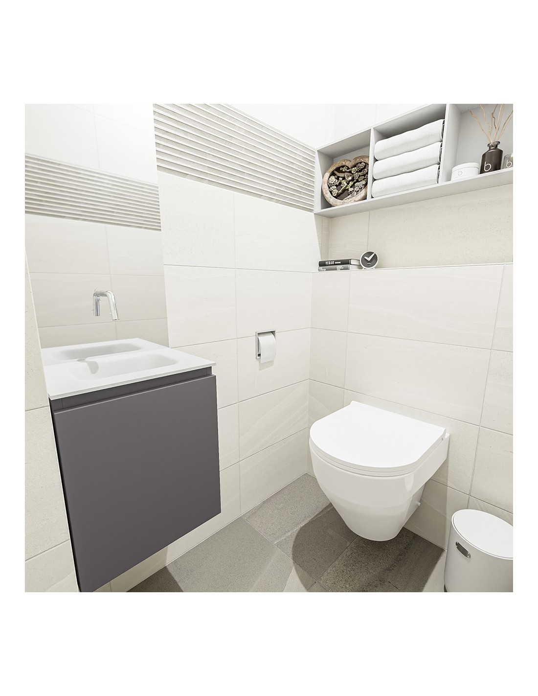 OLAN Komplet badmiljø centreret håndvask B40 cm MDF - Mørkegrå/Talkum