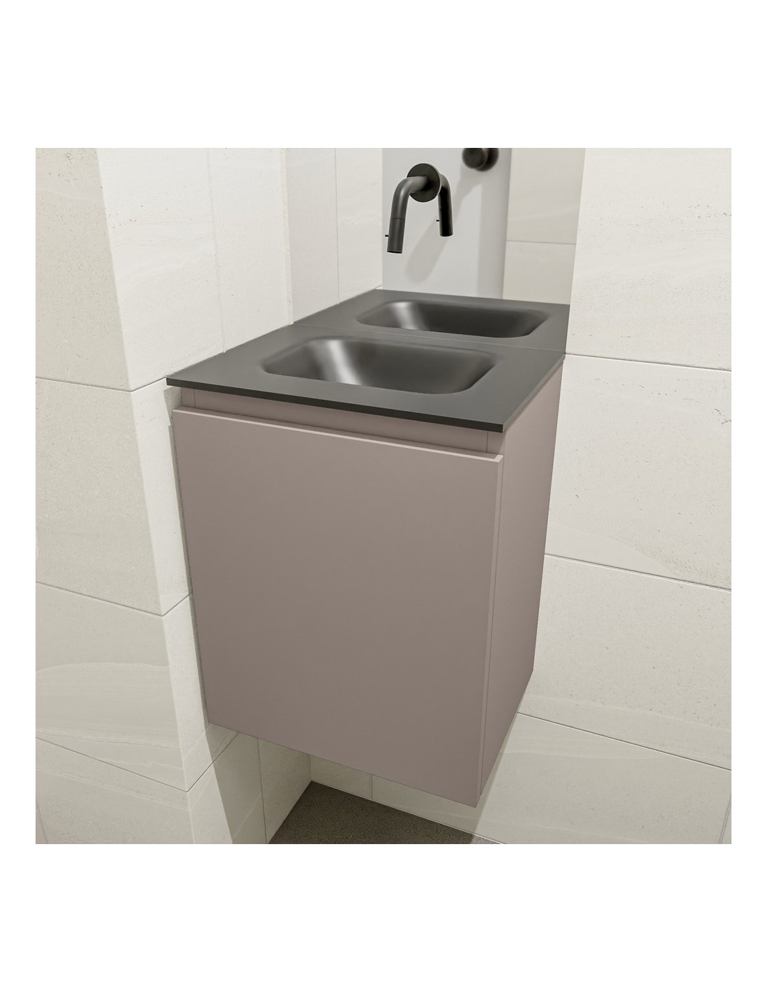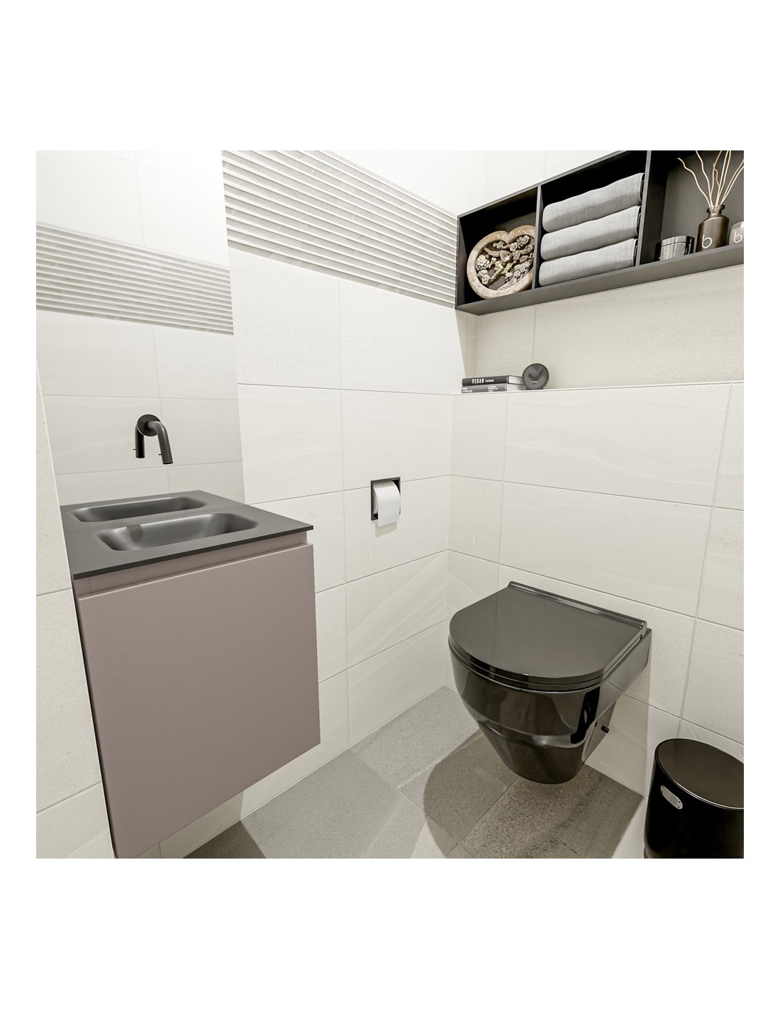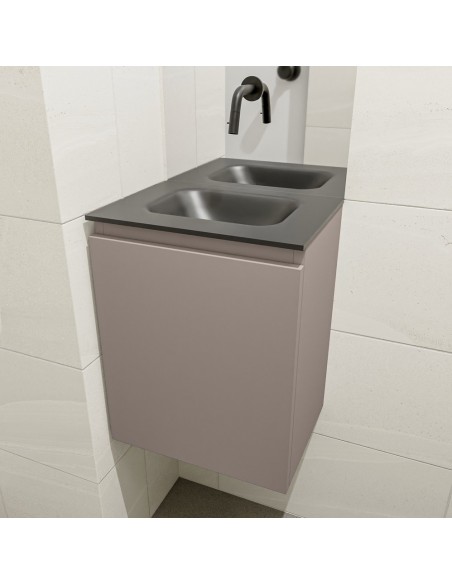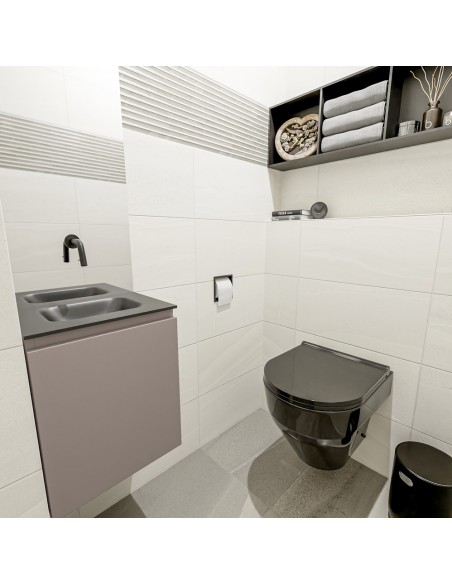 OLAN Komplet badmiljø centreret håndvask B40 cm MDF - Røg/Sort
