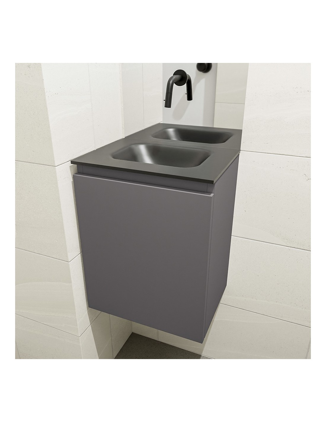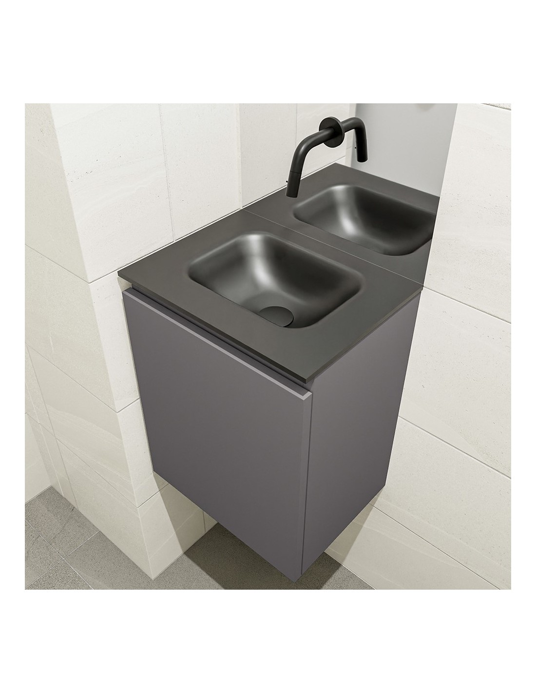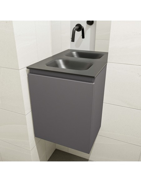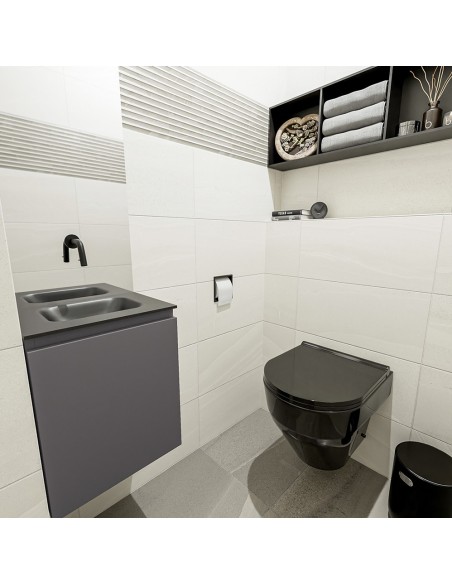 OLAN Komplet badmiljø centreret håndvask B40 cm MDF - Mørkegrå/Sort