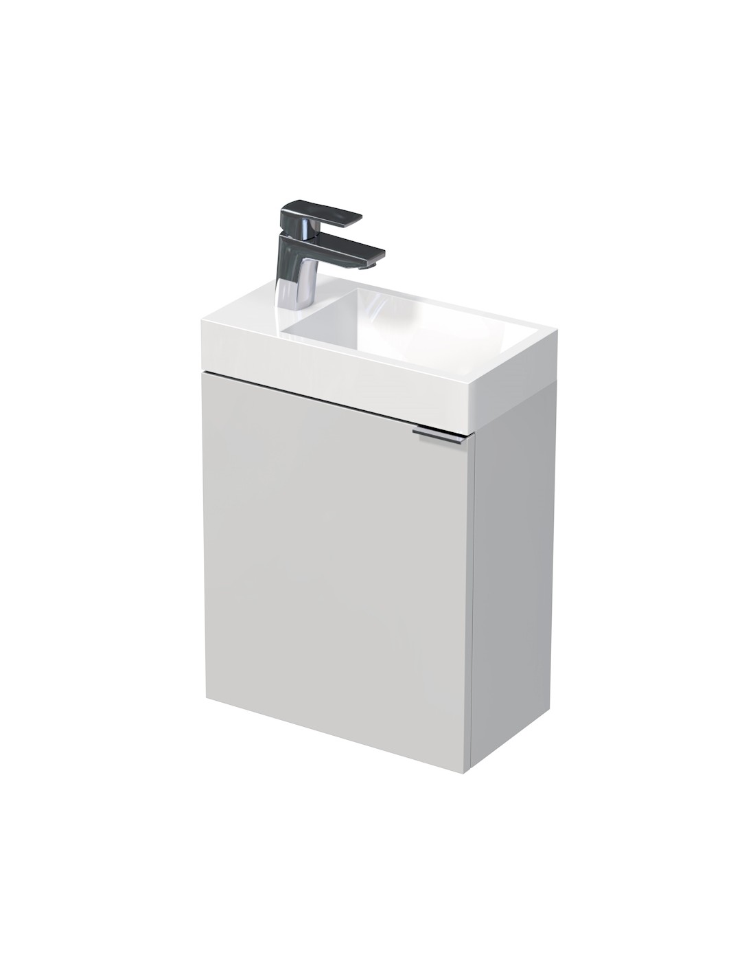 GUEST Venstre Komplet badmiljø med 1 håndvask B42 cm Solid stone og MDF - Hvid højglans