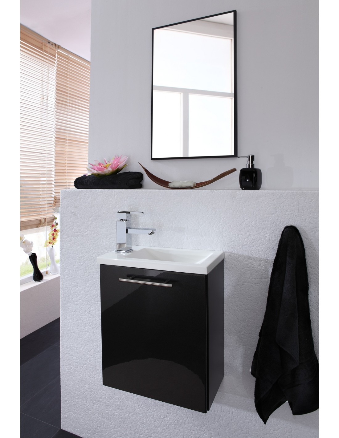 Komplet badmiljø i mdf og mineralsten H50,5 x B40 cm - Antracit højglans