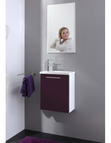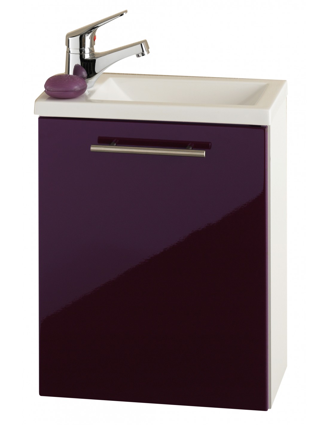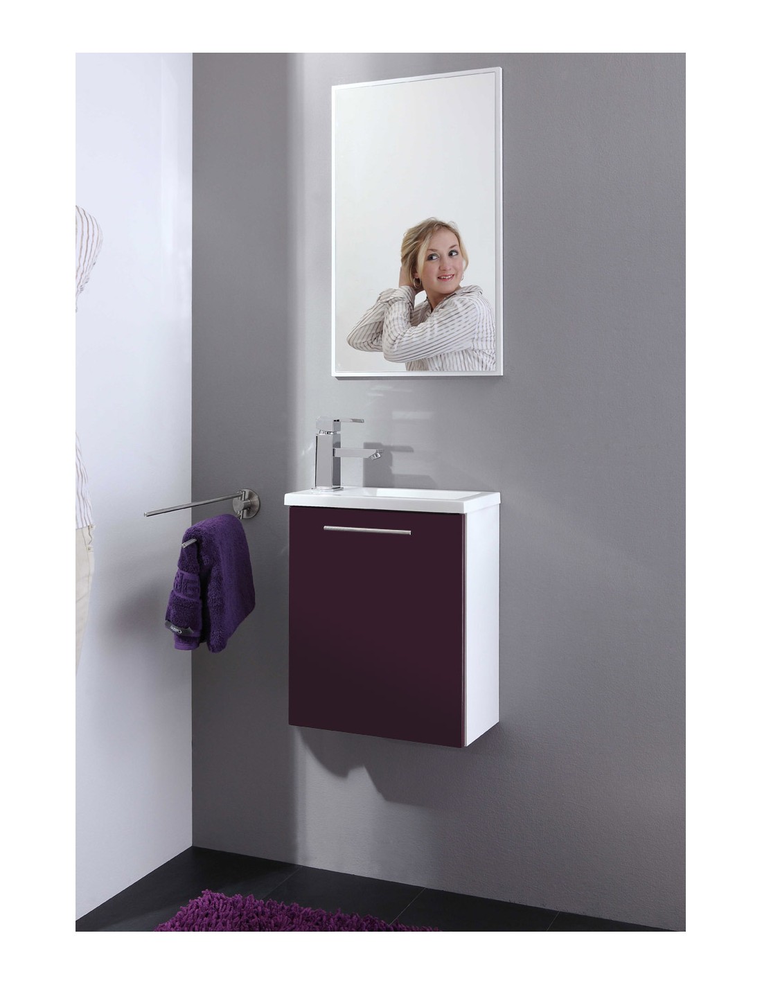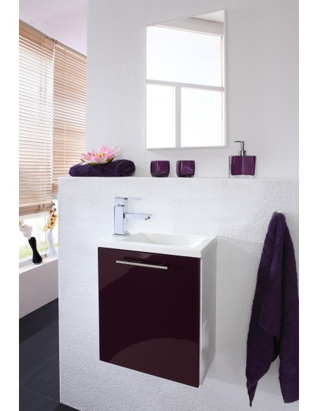 Komplet badmiljø i mdf og mineralsten H50,5 x B40 cm - Hvid/Brombær højglans
